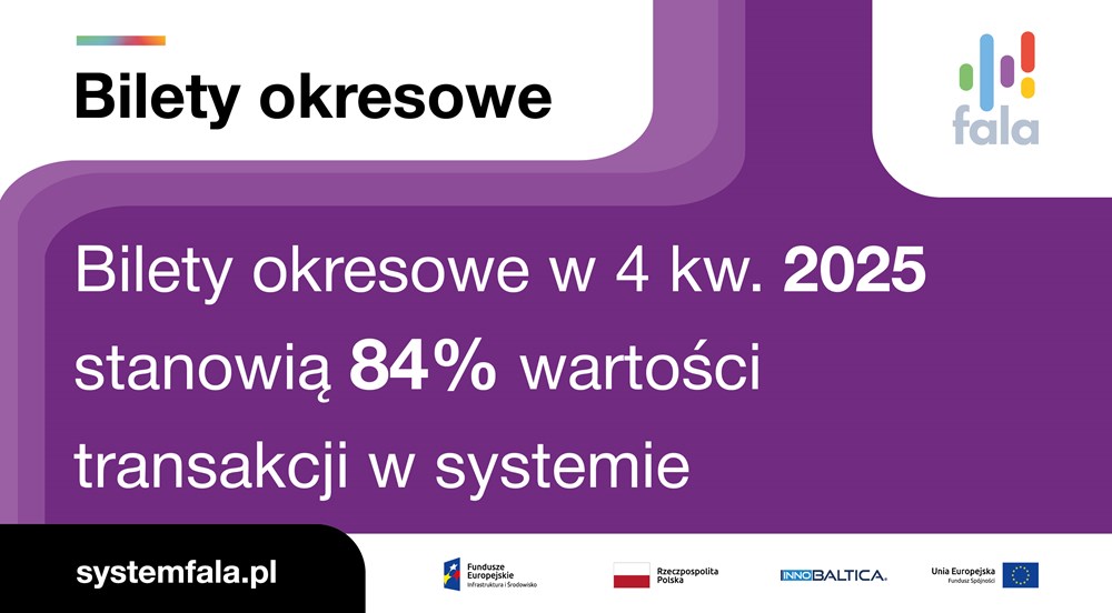 Znaczącą część sprzedaży stanowią bilety okresowe – 84% wartości transakcji, co potwierdza, że z systemu korzystają głównie pasażerowie regularnie dojeżdżający do pracy i szkoły. Największy udział w sprzedaży ma Gdańsk (71%), co jest m.in. efektem skutecznej kampanii informacyjnej, wymiany Kart Miejskich ZTM na System FALA oraz integracji Gdańskiej Karty Mieszkańca z FALĄ.