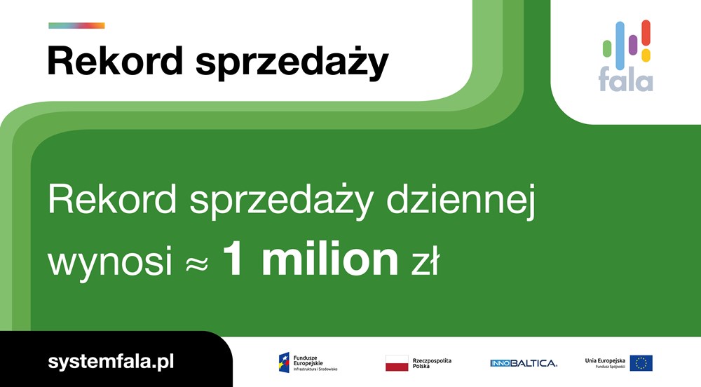 InnoBaltica, wdrażająca System FALA w województwie pomorskim, rozpoczęła czwarty kwartał 2025 roku z rekordowym wynikiem dziennej sprzedaży. 1 października spółka odnotowała najwyższą w historii dzienną wartość sprzedaży – blisko 1 milion złotych. To dowód na rosnące zainteresowanie nowoczesnym sposobem zakupu i rozliczania podróży w regionie.