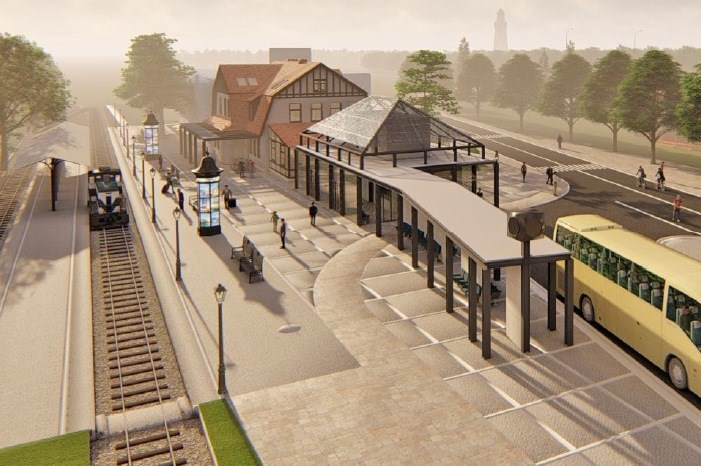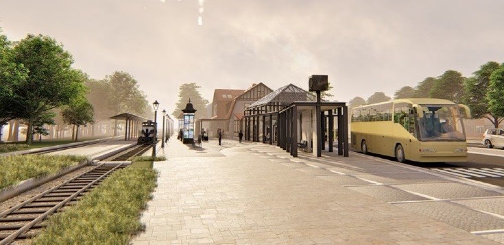 Zamówienie będzie realizowane w formule zaprojektuj i wybuduj. Powstanie nowy dwukondygnacyjny budynek dworcowy z wiatą przystankową i szklanym łącznikiem do historycznej części, która po przebudowie będzie pełnić funkcje muzeum kolei wąskotorowej. W nowym budynku dworca przewidziano kasy muzeum i kolejową, poczekalnię, punkt informacji turystycznej, toalet, a także stanowisko na potrzeby komunikacji samochodowej. Tym samym powstać ma tu „zintegrowany system przesiadkowy”. Na piętrze zaplanowano sale muzealne i pomieszczenia socjalne. Zagospodarowane zostanie też otoczenie wraz ze zmianą geometrii istniejącej zatoki autobusowej.