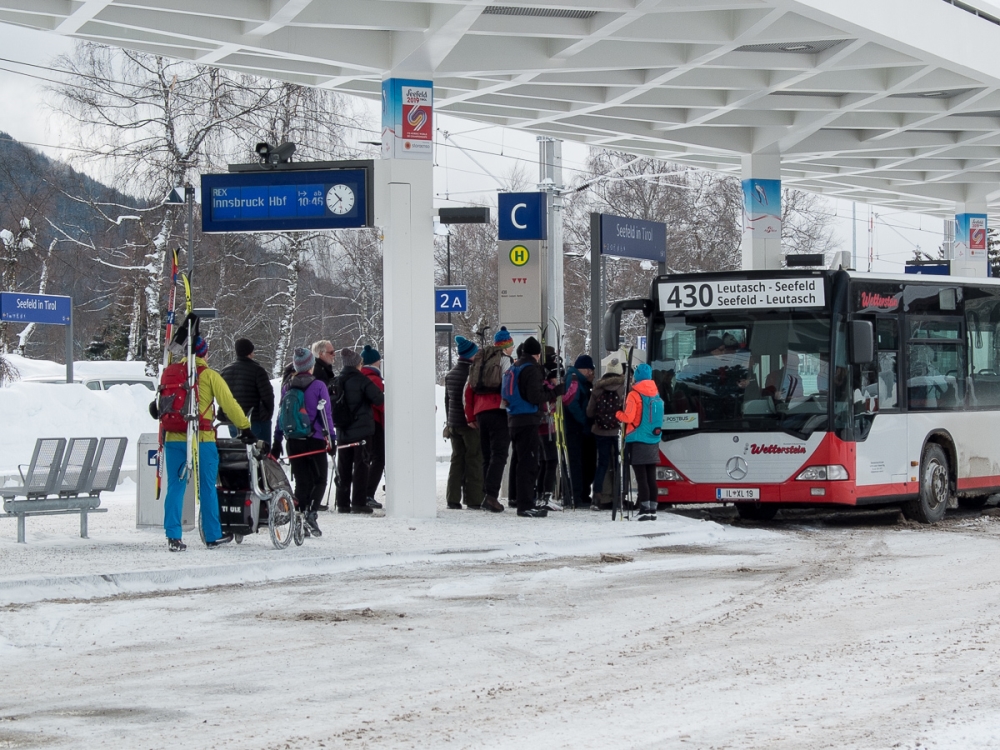 Autobusy i skibusyW samym Seefeld kursują trzy linie skibusów. Przejeżdżają okrężnie przez znaczną część wsi, łącząc ze sobą dwa najważniejsze wyciągi narciarskie oraz umożliwiają dojazd na bardziej odległe trasy biegowe. Jedna z linii w wiosce obsługiwana jest autobusami przegubowymi(!), do których w Polsce przyzwyczailiśmy się w dużych miastach, a które ciężko sobie nawet wyobrazić w górskich miejscowościach turystycznych, zdominowanych przez niezbyt wygodne i ciasne busy. Wyciągi w Seefeld zachęcają do korzystania z transportu zbiorowego między innymi przez udostępnianie dużych szaf, w których można na noc zostawić narty i wysuszyć buty. Uzupełnieniem – uruchamianym głównie z myślą o turystach pieszych – jest Dorfbus, czyli bus wiejski. Na jego trasie jeżdżą mikrobusy. Dorfbus dojeżdża do odleglejszych dzielnic i wszędzie tam, gdzie nie dociera skibus.
