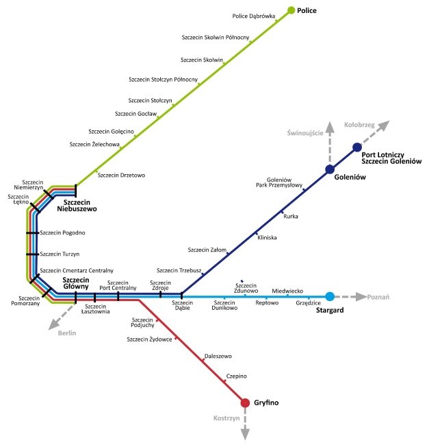 Przypomnijmy, że samorząd zakłada, że pociągi do i z Polic będą kursowały w szczycie przewozowym co pół godziny, a poza nim co godzinę, natomiast na odcinku od Szczecina Głównego do Niebuszewa częstotliwość ma być wyższa - w szczycie ma wynosić 15 minut a poza nim 30 minut.