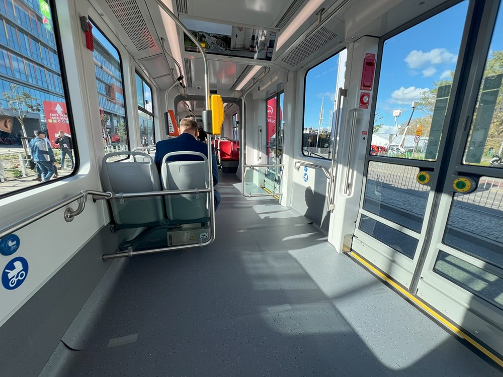 a razie w ramach testów i jazdy nadzorowanej. Jakie są więc nowe tramwaje dla Pragi? Przede wszystkim bardzo przestronne. Siedząc w środku mieliśmy wrażenie, że tramwaj jest dłuższy niż jest w rzeczywistości (ma niespełna 32 metry długości). Jednokierunkowy wóz może zabrać na swój pokład 243 pasażerów z czego 70 na miejscach siedzących.
