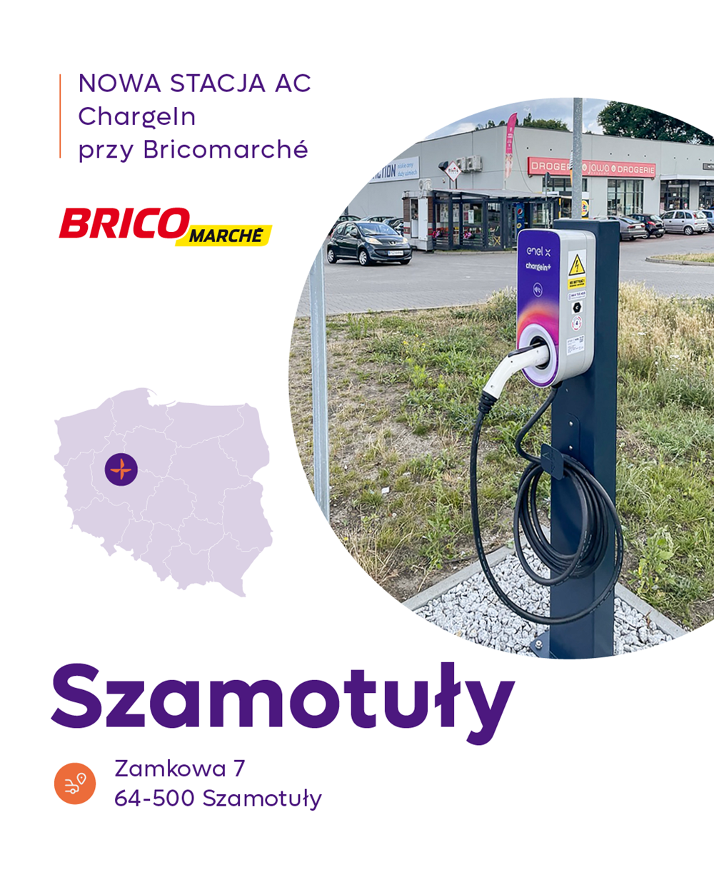 Stacja ładowania ChargeIn w Szamotułach to kolejna lokalizacja na mapie sieci ChargeIn W ostatnich tygodniach operator uruchomił stacje ładowania m.in. w Jarosławiu, Sierpcu, Koninie, Kutnie, Kamiennej Górze, Mławie czy Gostyninie. Zgodnie z zapowiedziami, w najbliższym czasie oddane do użytku zostaną kolejne lokalizacje.