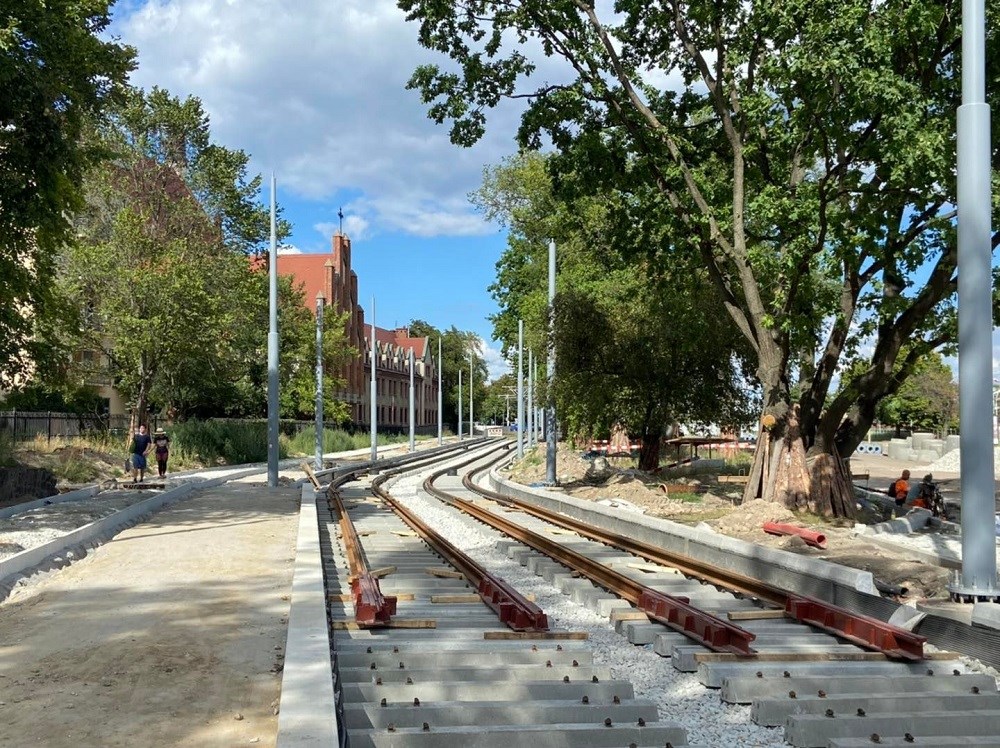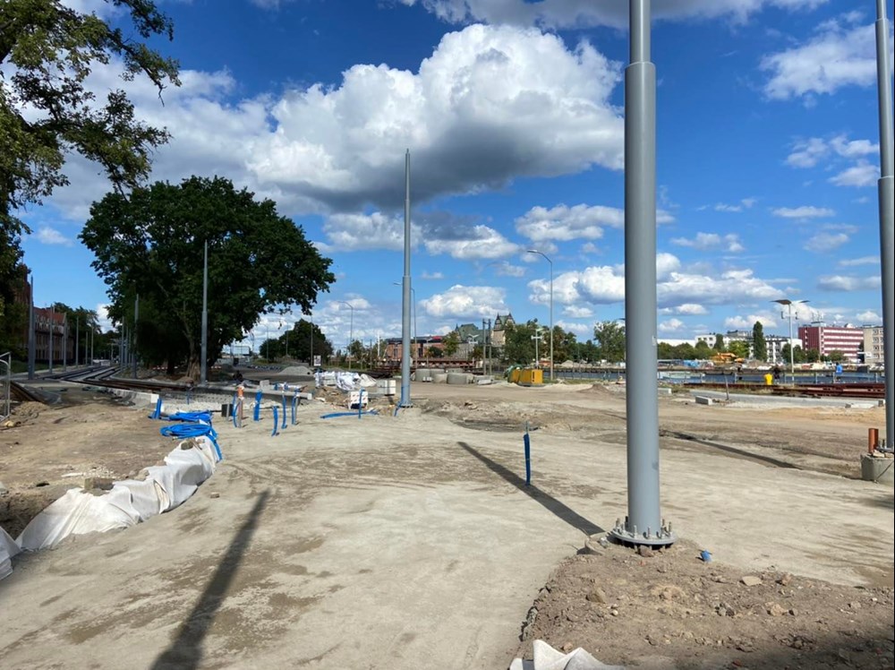 “Torowisko wzdłuż ulic Nabrzeże Wieleckie i Kolumba nabiera kształtów.Pojawiają się kolejne odcinki torowiska przed dworcem i przy przystanku Dworcowa, a także kolejne słupy trakcyjne. Po przebudowie, przed budynkiem dworca zostanie zachowany trzeci tor, natomiast pod wiaduktem kolejowym pojawi się dodatkowy rozjazd od strony Starego Miasta, a na jednotorową ulicę Dworcową wjazd od strony Pomorzan” – możemy przeczytać na facebookowym profilu Tramwajów Szczecińskich.