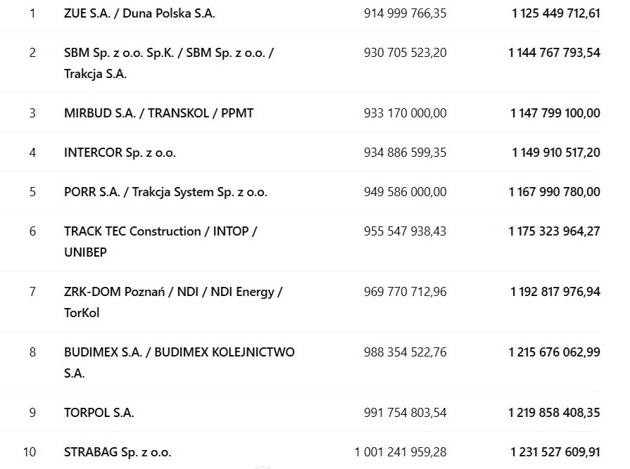Co bardzo ważne wszystkie oferty zmieściły się w budżecie PKP PLK określonym na 1,874 mld złotych brutto.