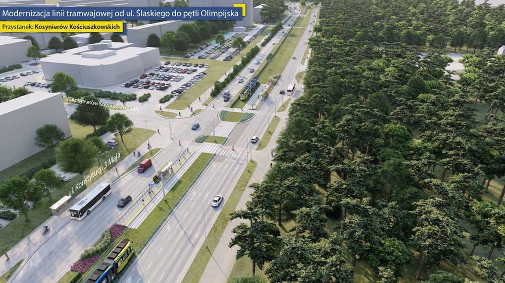 jeszcze w ubiegłym roku. Modernizację przejdą przystanki tramwajowe - „Wyszyńskiego”, „Ligi Polskiej”, „Kosynierów Kościuszkowskich” oraz „Olimpijska”, na których pojawią się nowe wiaty przystankowe przystosowane do obsadzenia ich roślinnością, a przystanki zostaną również wyposażone w system dynamicznej informacji pasażerskiej. Ich długość wyniesie nieco ponad 34 metry. Wszystkie przystanki znajdą się za skrzyżowaniami, w celu przyspieszenia przejazdu tramwajów.