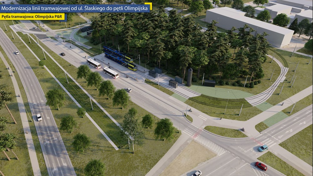 Już nieaktualna wizualizacja rejonu pętli Olimpijska wraz ze zmodernizowanymi, ślepymi torami do ostawiania tramwajów
