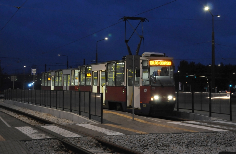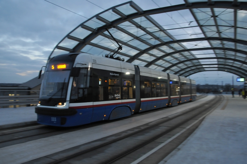 Brak priorytetu ruchuNiestety, trudno zrozumieć, dlaczego całkowicie nowa linia tramwajowa, po której tramwaje mogą jechać naprawdę szybko i która posiada zupełnie wydzielone torowisko (w zasadzie ma charakter linii szybkiej), zatrzymuje się przed skrzyżowaniami, ze stosunkowo niewielkim ruchem samochodowym (naliczyłem takich 3). W kilku miejscach jezdnia krzyżuje się z torowiskiem dosłownie w szczerym polu. W tym wypadku ani instalacja sygnalizacji wzbudzanej z priorytetem dla tramwajów czy nawet budowa przepustów dla aut pod torowiskiem nie powinna stanowić problemu (stanowiłyby zapewne nie więcej niż 1-2% wartości inwestycji).