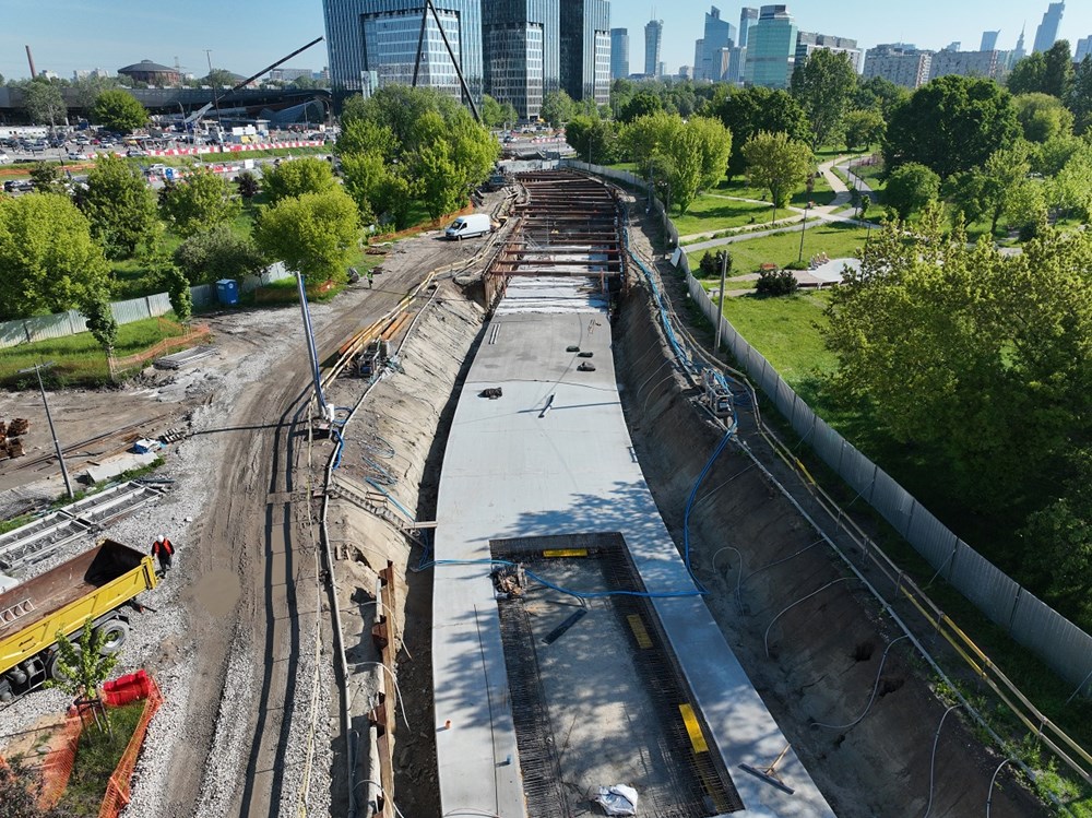 Wykonawca zasypuje już strop tunelu w miejscu południowej jezdni Alej Jerozolimskich i przygotowuje się do przełożenia ruchu między jezdniami – dzięki temu będą mogły ruszyć prace przy kolejnej części tunelu, po stronie Dw. Zachodniego.
