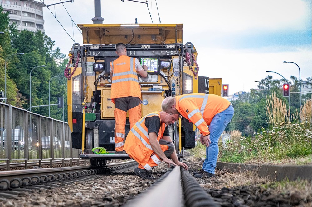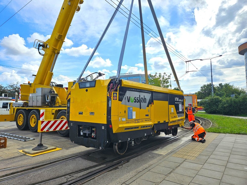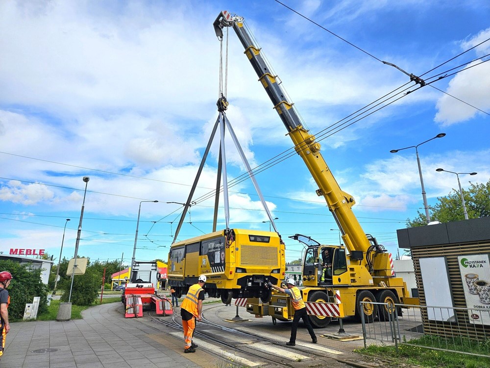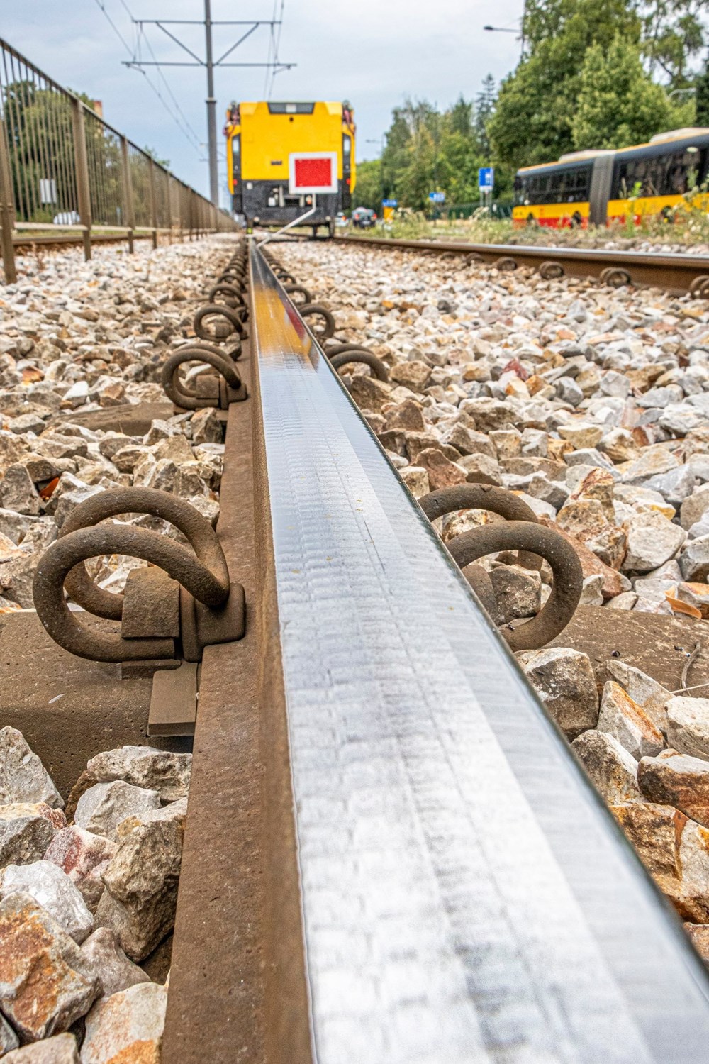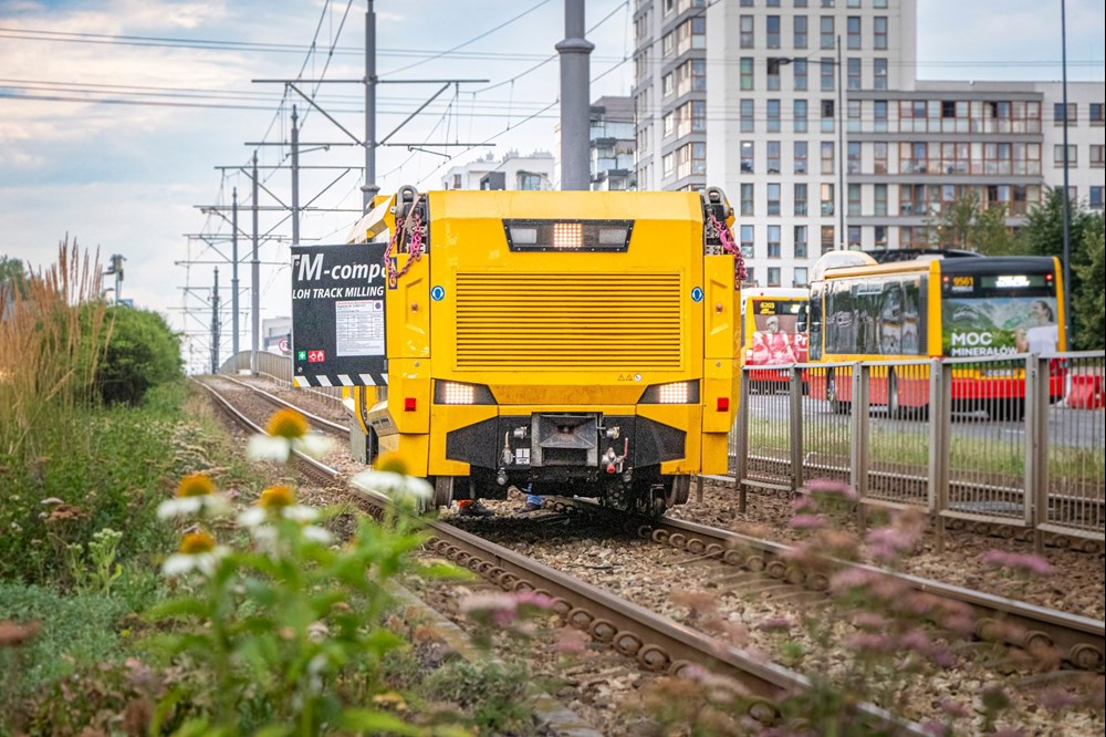 Dla poprawy komfortu przejazdu tramwajów na miejsce ściągnięto też frezarkę firmy Vossloh. Jej rozładunek został przeprowadzony w piątek 25 lipca na pętli P+R Al. Krakowska przy wykorzystaniu specjalistycznego dźwigu. Po raz pierwszy obecna jest tu frezarka, która może pracować na szynach rowkowych, czyli typowych szynach tramwajowych. Vossloh, po rozmowach z nami, odpowiednio dostosował swoją maszynę, służącą do frezowania szyn bezrowkowych (tzw. kolejowych).Jej zadaniem jest usunięcie nierówności z główki szyny. Zabieg ten wpływa na zmniejszenie zużycia szyn i kół, a także – przede wszystkim – zmniejszenie hałasu i poprawę komfortu jazdy.