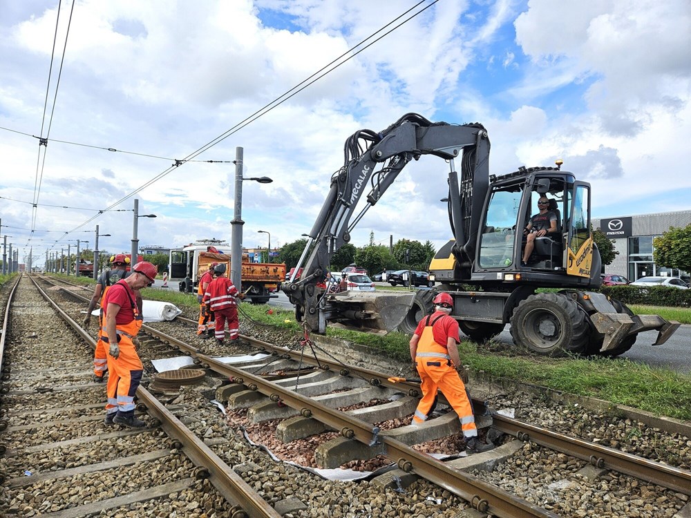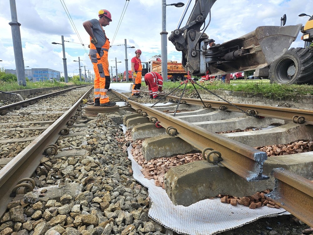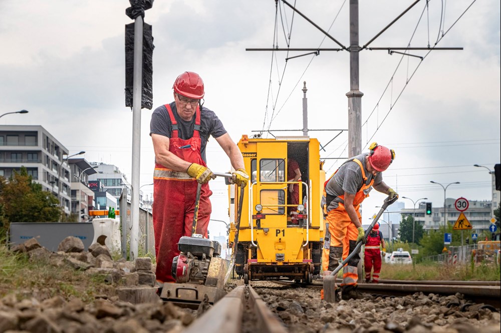 Prowadzone są także intensywne prace utrzymaniowe na dalszym odcinku torowiska – w kierunku pętli P+R Al. Krakowska. W miniony weekend (26-27 lipca) wyremontowano przejazd przez tory na skrzyżowaniu 1 Sierpnia i al. Krakowskiej. Wymieniono szyny, podsypkę i wykonano nową, równą zabudowę asfaltową. Na miejscu pracowała także podbijarka (Plasser).