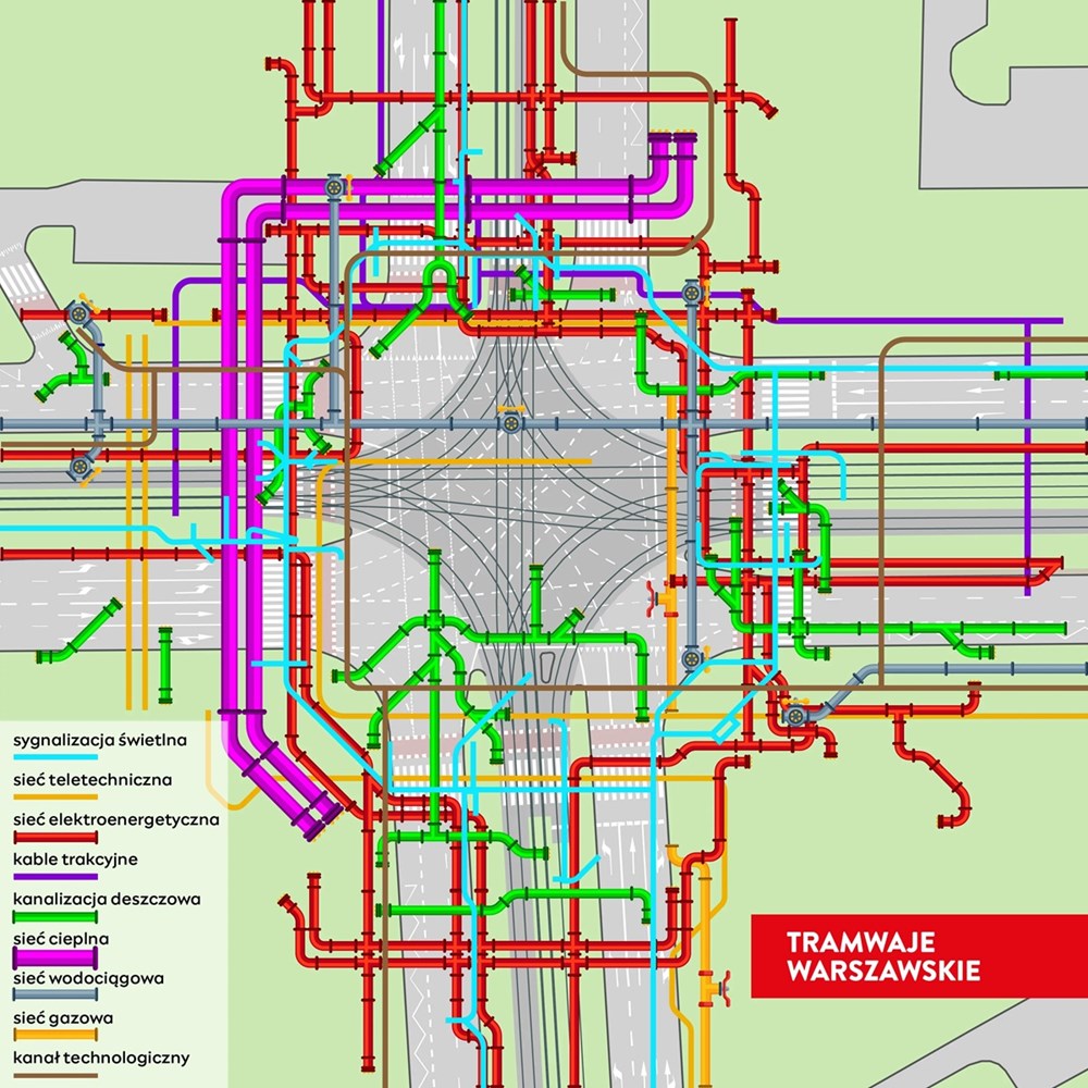 Zgodnie z obowiązującymi przepisami budowlanymi muszą zostać zachowane odpowiednie odległości między elementami infrastruktury podziemnej, jak i naziemnej. Wszystkie instalacje zostaną przystosowane do przyjęcia dodatkowych obciążeń w związku ze zmianami w układzie komunikacyjnym na powierzchni. Przebudowa uwzględnia też zużycie eksploatacyjne istniejących instalacji. Dzięki przeprowadzonym teraz kompleksowym pracom zostanie wyeliminowane ryzyko rozkopywania tego ważnego skrzyżowania i nowo wybudowanej infrastruktury z powodu awarii.