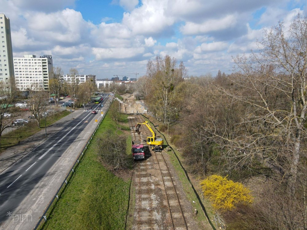 – Na pozostałym odcinku trasy kórnickiej prace toczyły się całą zimę, fragment przylegający do użytku ekologicznego był wyjątkiem. Teraz przystępujemy do rozbiórki starego torowiska i sieci trakcyjnej w tym miejscu. Równolegle kontynuujemy pozostałe prace torowe i budujemy konstrukcję drogi, która będzie przedłużeniem ul. Pleszewskiej – mówi Tomasz Płóciniczak, wiceprezes spółki Poznańskie Inwestycje Miejskie.