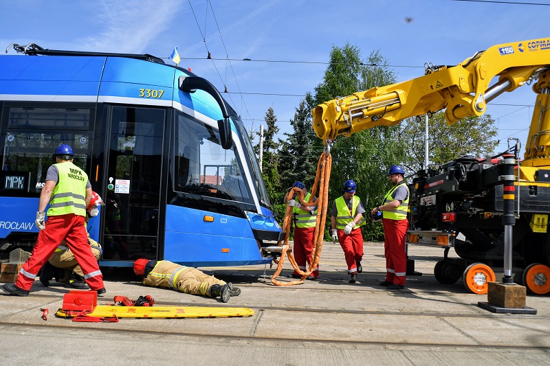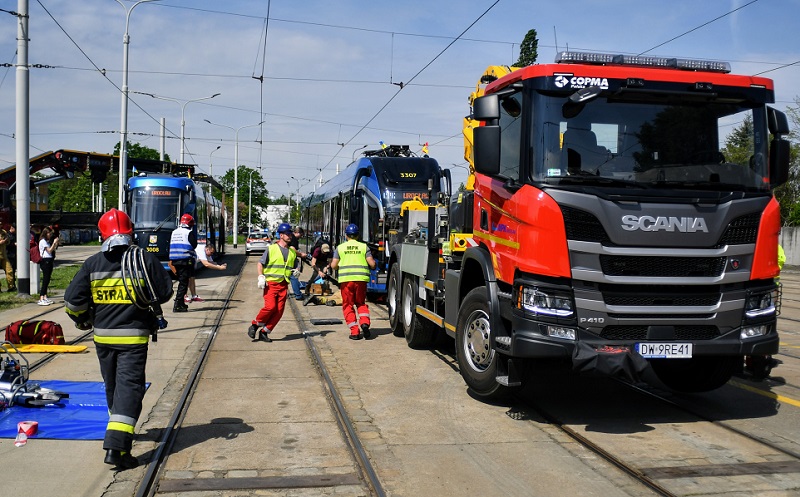 Specjalistyczny dźwig MPK Wrocław już przed dwoma tygodniami był jednym z głównych bohaterów cyklu szkoleń, które przewoźnik prowadził ze strażakami. Symulacja akcji ratowniczej była idealną sposobnością do ponownego przetestowania schematów szybkich działań obu jednostek. A także przyjrzenia się możliwościom sprzętu i ludzi, którzy w akcjach ratowania życia biorą udział.