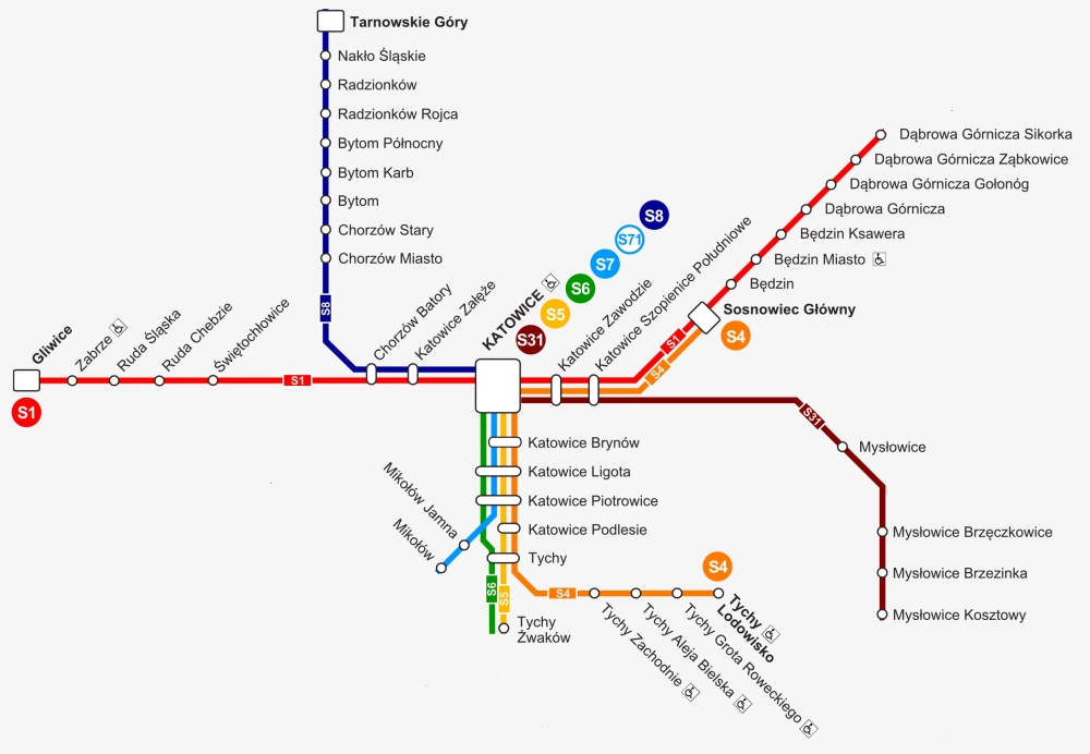 Jak widać, jest to idealnie zaplanowana sieć jeśli chcemy jechać do lub z Katowic. Jeśli jednak chcemy dotrzeć pociągiem np. z Zabrza do Tychów, musimy jechać przez wąskie gardło systemu w Katowicach, pokonując dystans o 34% dłuższy niż samochodem czy autobusem.