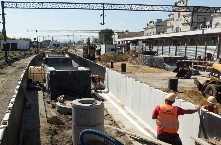 Na stacji Lublin budowany jest peron nr 3. Ułożono już ścianki, powstaje konstrukcja, która umożliwia budowę fundamentów pod wiaty. Jest już widoczna struktura tunelu od dworca do peronu nr 3. Zbudowano też 2 szyby dla wind oraz wyjścia z tunelu na peron nr 2 i 3.