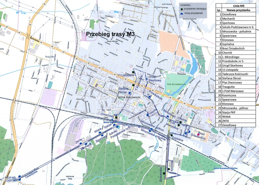 trzy linie, które łączą obrzeża miasta z jego centrum. Autobusy kursują co 30 minut w szczycie i co 60 minut poza nim. – W Mińsku Mazowieckim działają linie komunikacyjne, które wożą mieszkańców do Warszawy, ale takiej komunikacji stricte po mieście nie ma. Z tych odleglejszych osiedli, które się bardzo intensywnie rozbudowują, trudno się dostać do centrum, ośrodka zdrowia, na targowisko czy do urzędu. Ludzie radzą sobie, jeżdżąc własnymi samochodami. Centrum miasta strasznie się zapycha – mówi burmistrz Marcin Jakubowski.