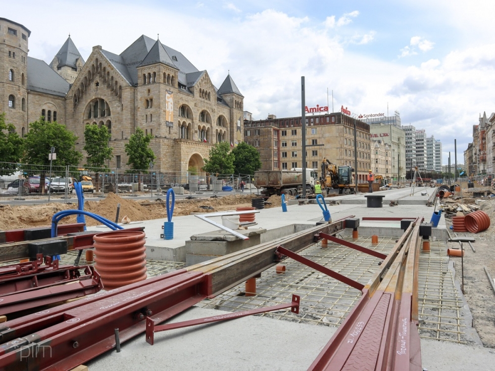 Równolegle z pracami torowymi prowadzona jest przebudowa jezdni, chodników, tras rowerowych i infrastruktury podziemnej. Efektem wszystkich robót będzie przekształcenie kolejnego odcinka ul. Święty Marcin w przestrzeń publiczną przyjazną dla wszystkich jej użytkowników.