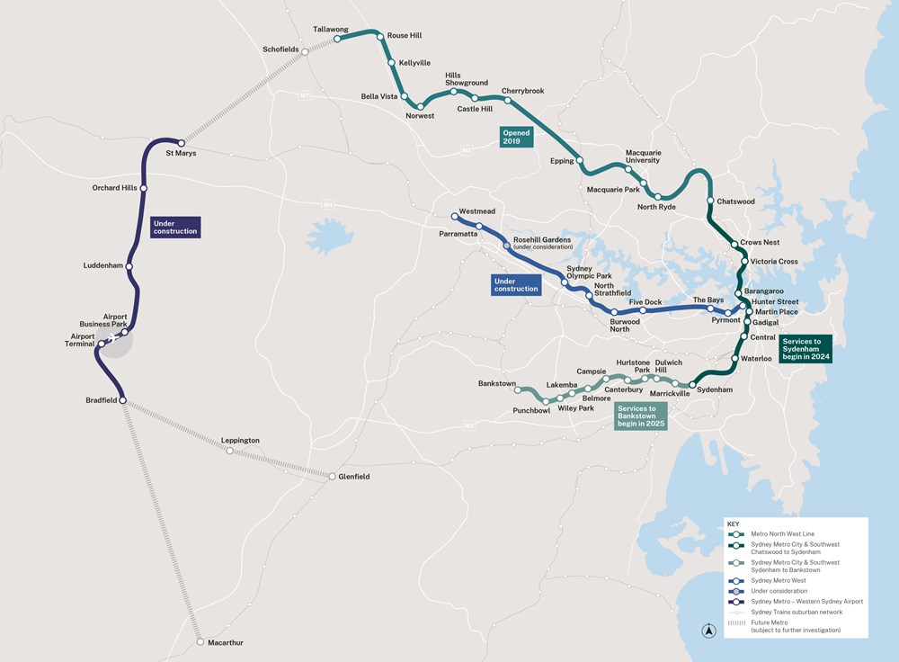 System metra w Sydney wzbogacił się o dodatkowe 15,5 km linii, która umożliwia mieszkańcom dotarcie do najbardziej ruchliwych części miasta. Do dyspozycji pasażerów jest sześć zupełnie nowych stacji oraz dodatkowe perony na stacjach metra Central Station i Sydenham Station. Każda stacja ma swój własny, rozpoznawalny i wyjątkowy design. Nowa linia jest kolejnym etapem linii M1 Northwest & Bankstown Line, która obecnie rozpościera się na długości 51,5 km pod Sydney. Pociągi zatrzymują się na 21 stacjach między Tallawong a Sydenham. Pozostałe 13 km linii M1 zostanie otwartych – prawdopodobnie w przyszłym roku – po przekształceniu istniejących stacji na linii T3 Bankstown Line.