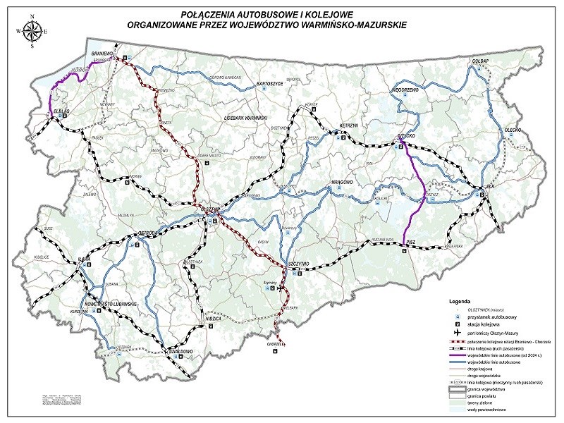 Województwo warmińsko-mazurskie od kilku lat organizuje wojewódzkie przewozy autobusowe. Także w 2024 roku samorząd planuje uruchomienie kilku linii autobusowych, w tym dwóch nowych, z Braniewa do Elbląga przez Tolkmicko i Frombork oraz z Giżycka do Pisza przez Orzysz.