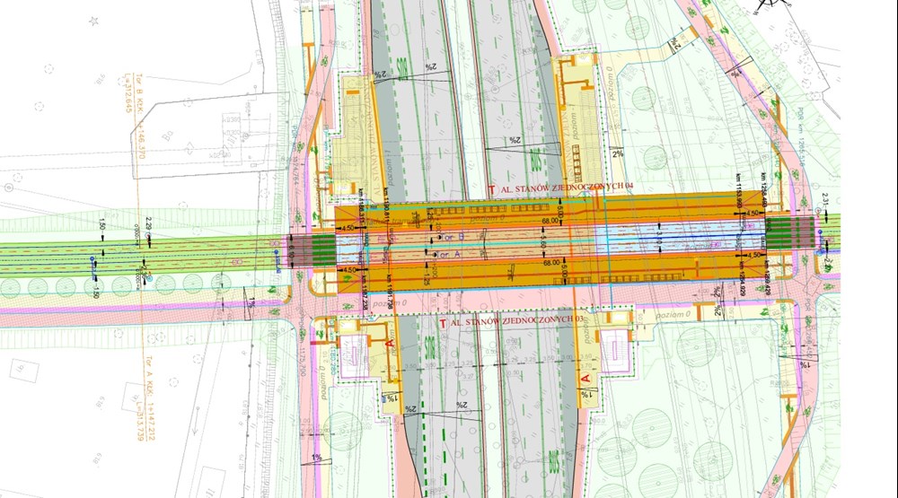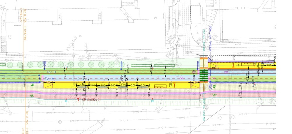 h, która zostanie obniżona do poziomu minus 1, co sprawi, że tramwaj zostanie poprowadzony na poziomie 0. Każdy z przystanków ma mieć długość 68 metrów, co ma umożliwić jednoczesną obsługę dwóch tramwajów. Wyjątkiem będą przystanki końcowe i początkowe samej pętli, o czym niżej. Wszystkie projekty przystanków dołączamy do galerii artykułu.