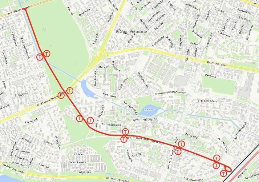 od wariantu modernizacji torów na Waszyngtona. Nowa trasa zacznie swój bieg w rejonie Kanału Wystawowego, a następnie pobiegną wzdłuż wspomnianego Kanału, wiaduktem nad al. Stanów Zjednoczonych i w rezerwie tzw. Trasy Tysiąclecia. Dalej tramwaj pojedzie w ciągu ul. Bora-Komorowskiego do pętli tramwajowo-autobusowej Gocław.