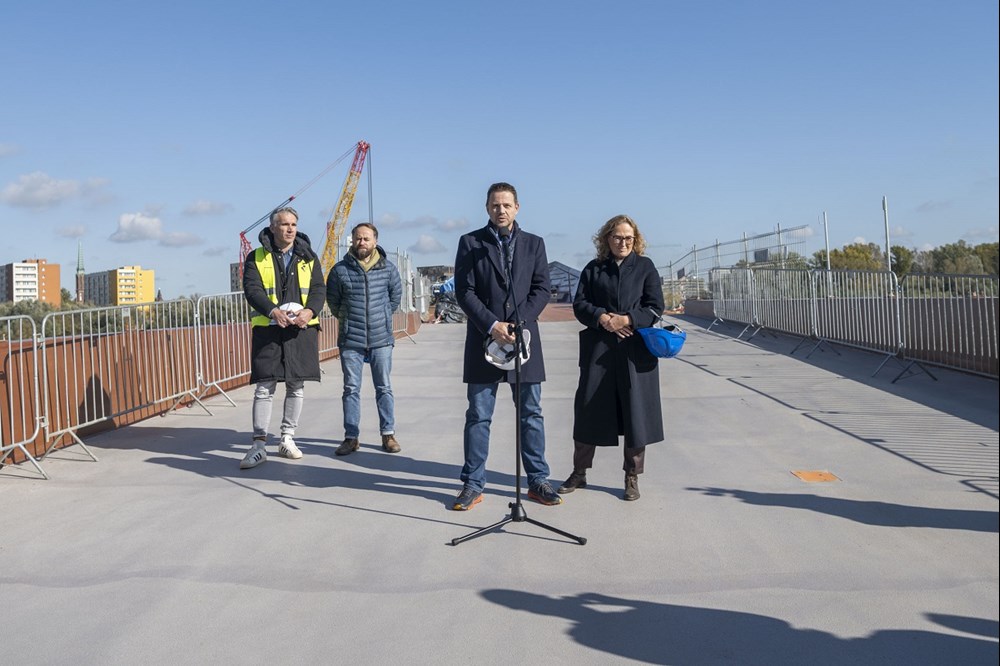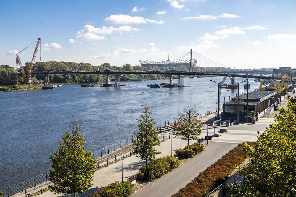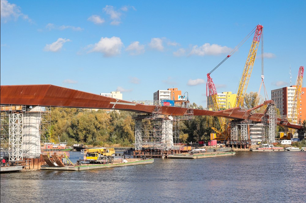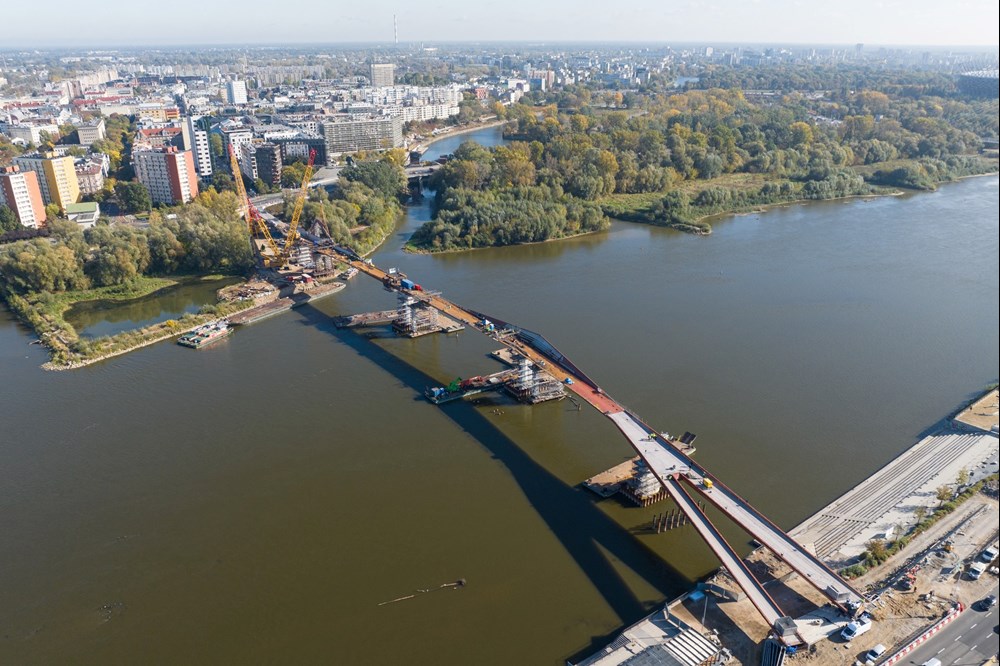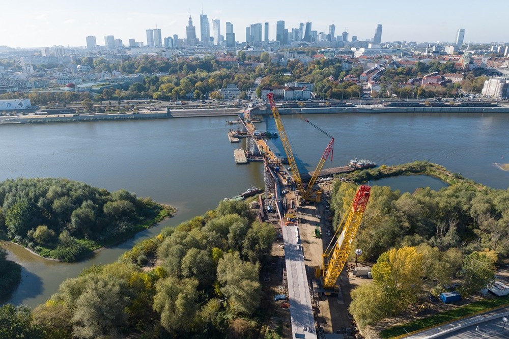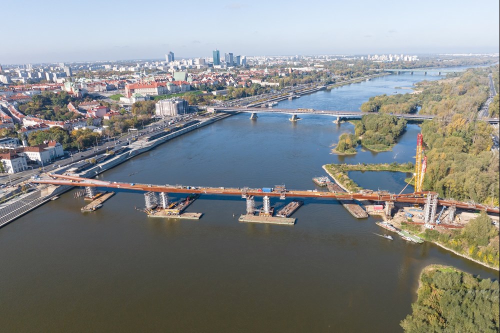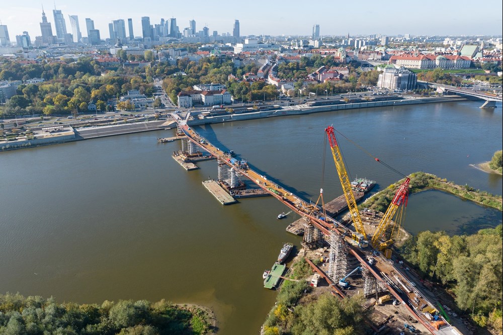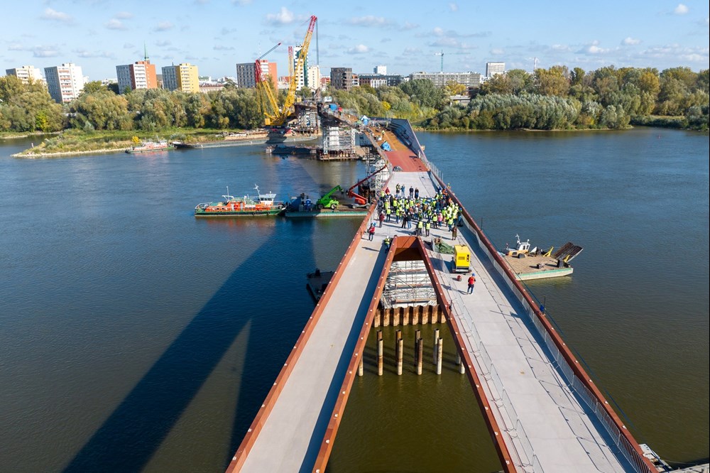 podpisana w listopadzie 2021 r., a pierwsze prace ruszyły na początku 2022 r. Teraz został zamontowany ostatni element konstrukcji. – Most połączył dwa brzegi Wisły. To pokazuje, że takie inwestycje mogą być realizowane szybko. Most przyczyni się do tego, by zupełnie odmienić centrum Warszawy, połączyć bulwary z Pragą. Ulica Okrzei będzie wyglądała zupełnie inaczej. Mam nadzieję, że most będzie symbolem Warszawy – mówi Rafał Trzaskowski, prezydent Warszawy. – To most, który od początku miał łączyć. Naszą ambicją jest to, by Warszawa była taka sama dla wszystkich warszawiaków – mówi Ewa Malinowska-Grupińska, przewodnicząca Rady Miasta.