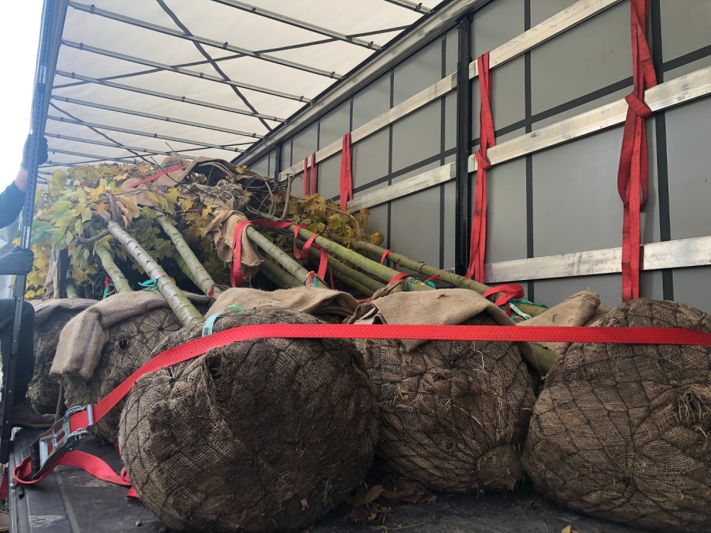 W miniony weekend na budowę stacji C08 Płocka przyjechał pierwszy transport drzew i krzewów. Były wśród nich 5 metrowe klony pospolite, wiśnie piłkowane oraz jarząb szwedzki. Wśród zaplanowanych gatunków drzew, jakie pojawią się w rejonie budowy metra na Woli będą również graby, lipy, grusze i jabłonie.