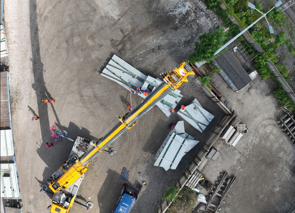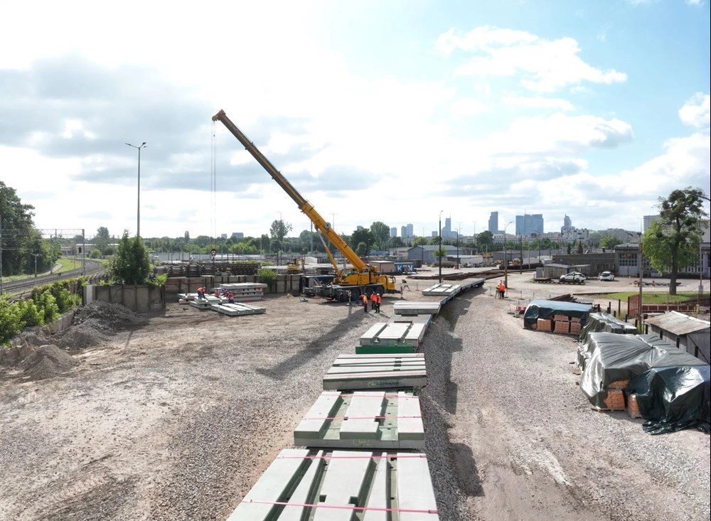 Prefabrykaty przyjechały kolejąZe względu na gabaryty płyt prefabrykowanych (do 20 ton), brak miejsca na składowanie płyt prefabrykowanych przy pl. Zawiszy i chęć zminimalizowania utrudnień w ruchu samochodowym, płyty prefabrykowane zostały przetransportowane z Krakowa koleją najpierw na naszą bocznicę przy al. Prymasa Tysiąclecia 102, gdzie mieści się nasz Zakład Energetyki Trakcyjnej i Torów.