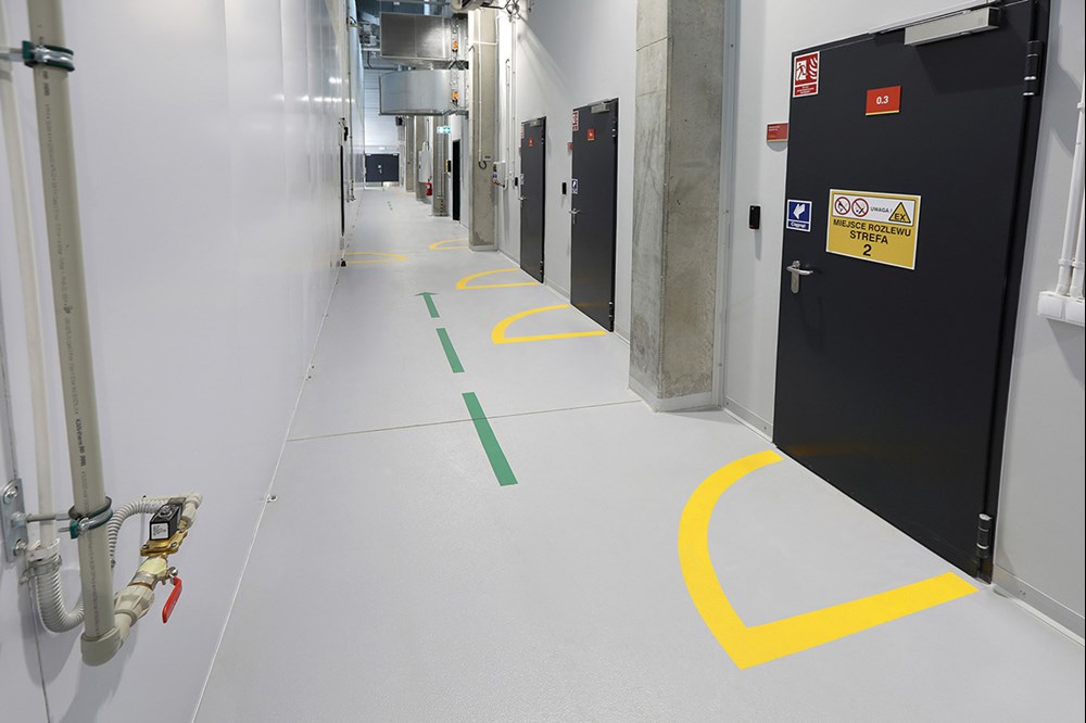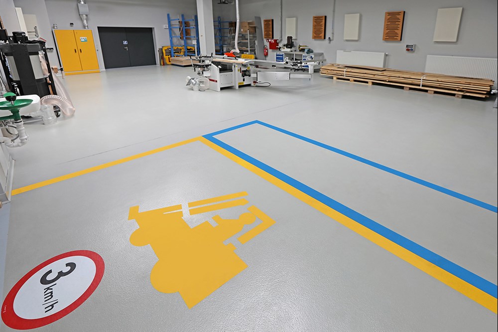 Wyżej wymienione wymagania postawiono, m.in. w Hali Lakierni, obejmującej dwie niezależne kabiny – przygotowawczą i lakierniczo-suszarniczą, magazyn farb i lakierów, serwerownie oraz w pomieszczeniach stolarni-tapicerni. Propozycją ekspertów Tremco CPG, zaakceptowaną przez inwestora, był specjalistyczny system Flowfresh ESD SR UV. To rozwiązanie posadzkowe powstaje na bazie żywic poliuretanowych oraz starannie wyselekcjonowanych kruszyw, cementów i wypełniaczy. Jednocześnie spełnia wymagania norm EN EIC 61340-4-1 i EN EIC 61340-4-5 w zakresie odprowadzania ładunków z powierzchni posadzki do uziemienia. Ponadto, dzięki wysokiej wytrzymałości na ścieranie, powłoka ta sprawdza się w strefach narażonych na intensywne obciążenia mechaniczne.