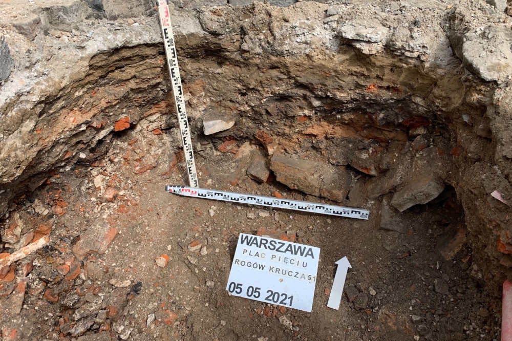 To jednak nie koniec znalezisk archeologicznych na budowie. W międzyczasie robotnicy odkopali u zbiegu ulic Kruczej i Widok pozostałości dawnej piwnicy. Standardowym działaniem jest wstrzymanie prac i powiadomienie konserwatora zabytków. Obecnie ZDM oczekuje na decyzję służb konserwatorskich w sprawie piwnicy. Znalezisko zajmuje jednak stosunkowo mały obszar na uboczu placu budowy. Jego odkrycie nie wpływa więc póki co znacząco na prowadzenie robót, zwłaszcza w porównaniu z brukiem odsłoniętym w marcu.