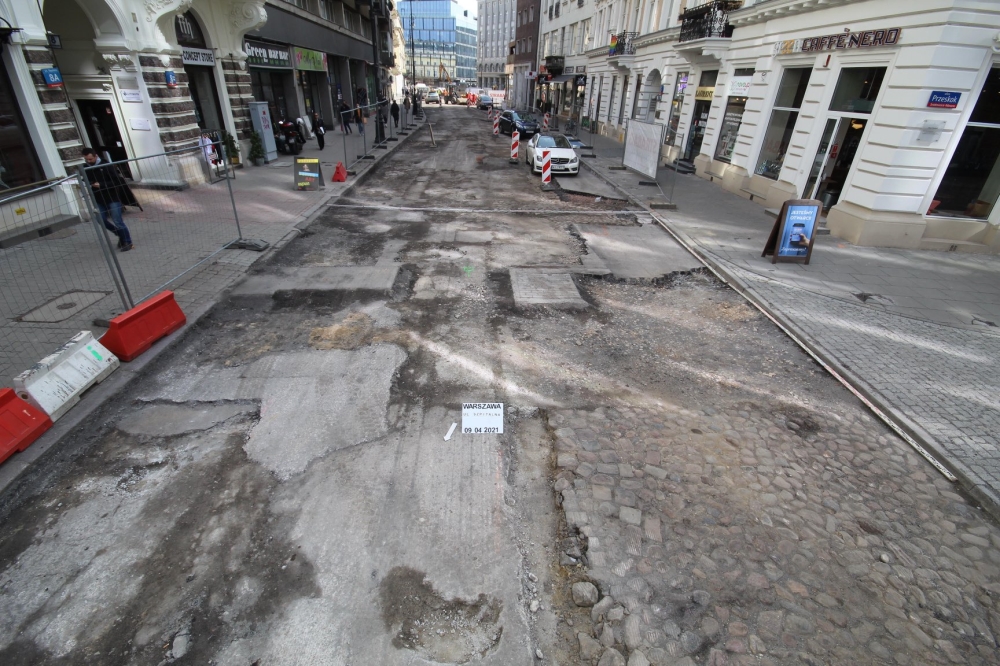 Zakończyło się badanie brukowanej nawierzchni odkrytej pod jezdnią. Znalezisko od marca wstrzymywało roboty na większości placu budowy. W najbliższych dniach przebudowa powinna przyspieszyć.