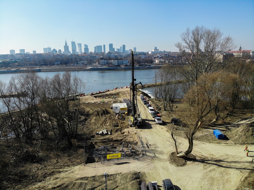 Od początku roku na praskim brzegu Wisły trwało przygotowanie zaplecza budowy nowego mostu oraz terenu pod inwestycję. Teraz zaczęły się zasadnicze prace budowlane. Na oczach warszawianek i warszawiaków pierwszy stołeczny most pieszo-rowerowy zepnie ze sobą oba brzegi rzeki i połączy Bulwary z Pragą na wysokości ulic Karowej na lewym brzegu i Okrzei na prawym brzegu. Budowa potrwa ponad dwa lata.