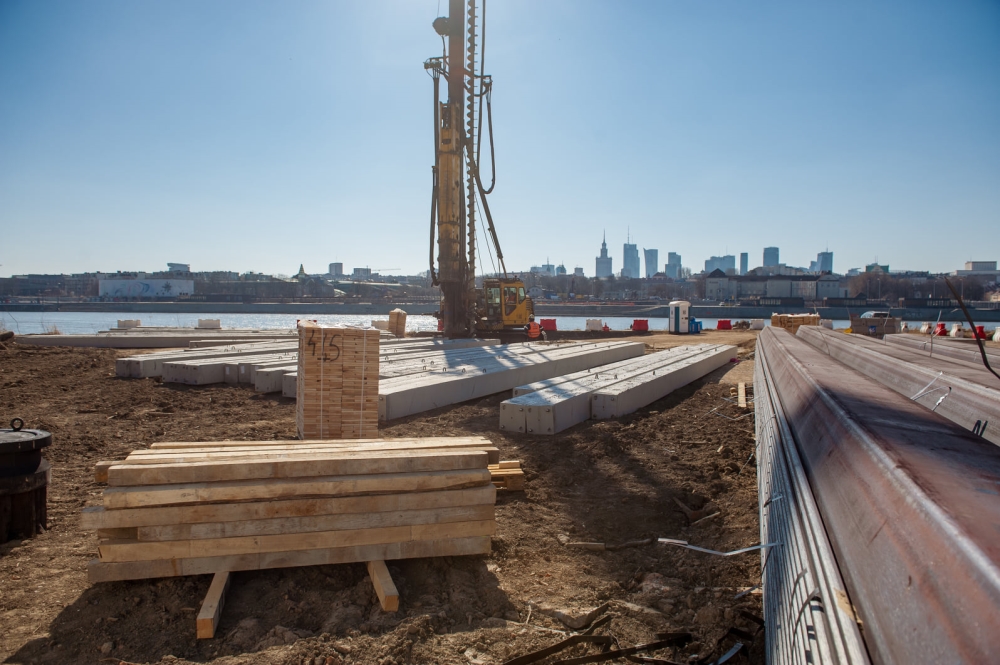 Wykonawca, polska firma Budimex, roboty zaczęła po praskiej stronie. Pierwszym etapem jest palowanie, czyli stworzenie fundamentów przyszłego mostu. Jego konstrukcja opierać się będzie na siedmiu żelbetowych podporach. Właśnie zaczęło się stawianie fundamentów pod pierwszą z nich – przez ostatnie dni wbito już 43 pale pod pierwszą podporę. W kolejnych dniach pojawiać się będą pale pod kolejne podpory. Rozpoczną się też pierwsze prace przy budowie przyczółku mostu na lewym brzegu Wisły.