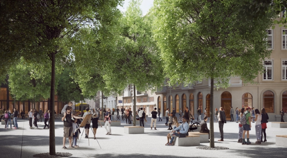 Posadzka placu zostanie wykonana z dużych płyt betonowych wzmocnionych włóknami i wykończonych kruszywem. Ważnym elementem koncepcji jest wprowadzenie zieleni – drzew liściastych o ukształtowanej wysokości i koronie, a także fontanny. Uwzględniono również spójną stylistycznie małą architekturę z licznym siedziskami. Pojawią się stylizowane latarnie.