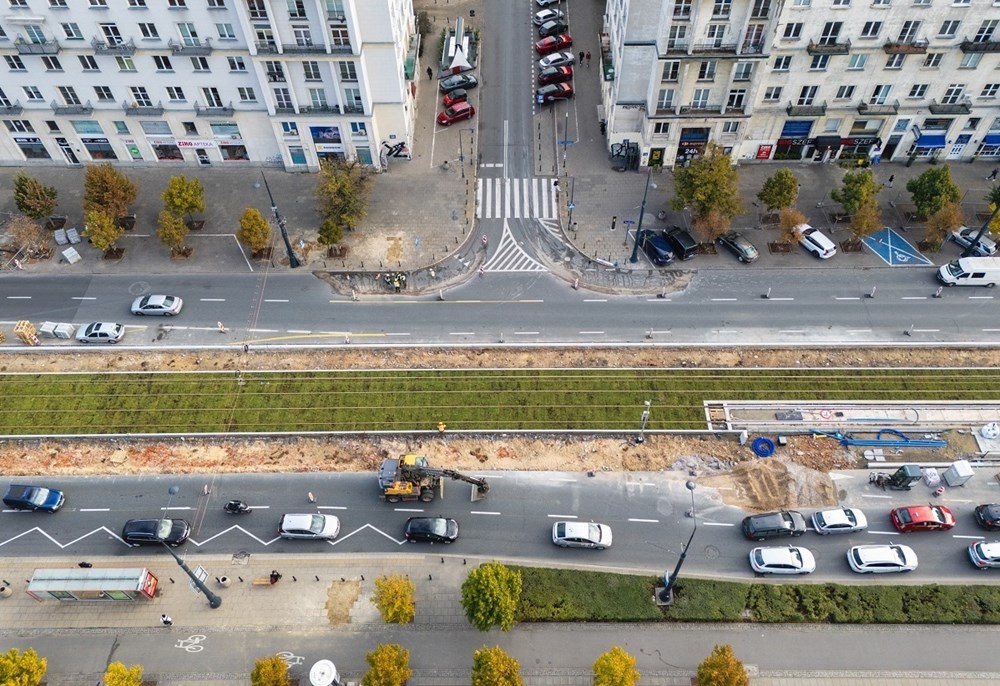 Zielona Marszałkowska coraz bliżej. Pomiędzy Królewską i Widok pracuje kilka ekip. Tramwaje Warszawskie kończą zasadniczą część prac przy przebudowie kilometrowego odcinka torów. Pomiędzy Królewską a Świętokrzyską został już ułożony zielony rozchodnik. Na pozostałym odcinku, zgodnie z wytycznymi pogotowia ratunkowego, są płyty z zabudową z kostki granitowej, umożliwiające przejazd pojazdów uprzywilejowanych. Przygotowane zostało miejsce na przyszłą zieleń, a także nowe przejścia dla pieszych i przejazdy dla rowerów oraz samochodów. Przy okazji zostały wyremontowane tory od Królewskiej do Senatorskiej, a na placu Bankowym wymieniono nawierzchnię na torowisku.