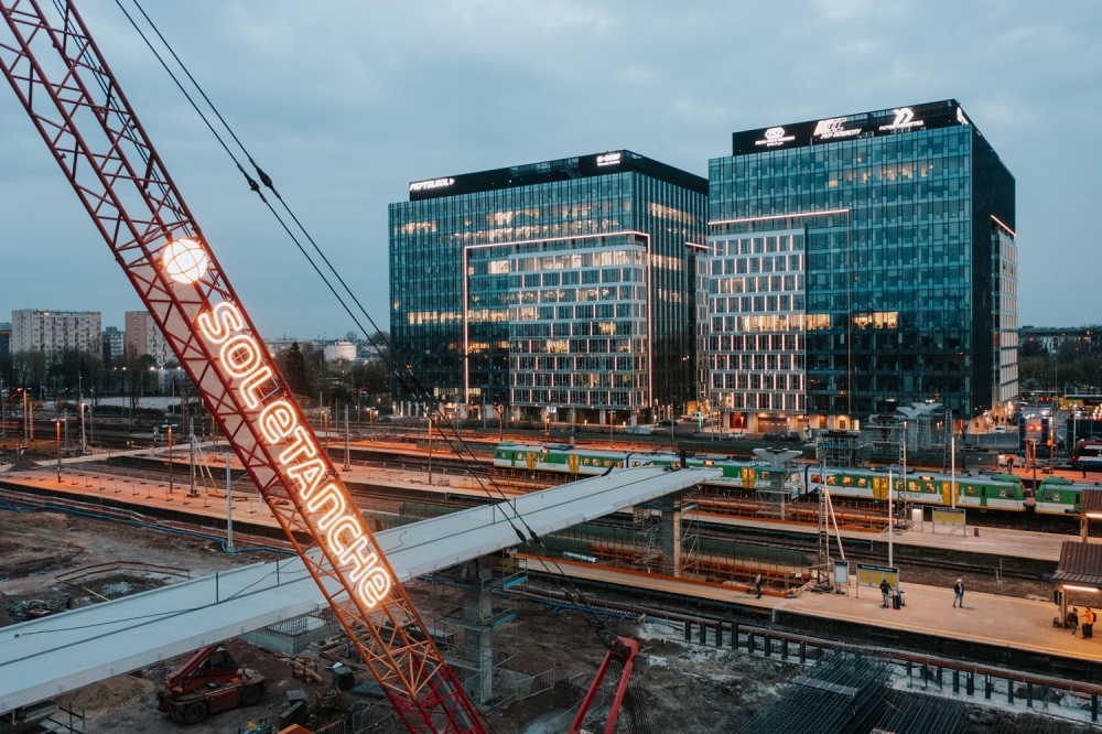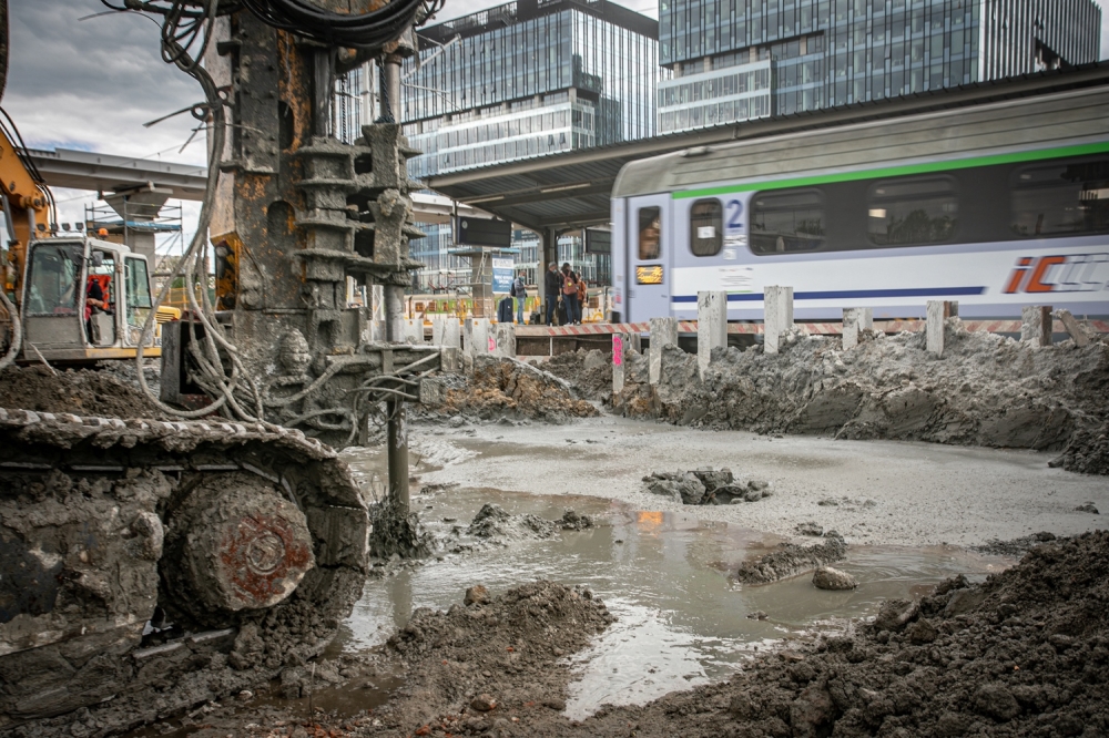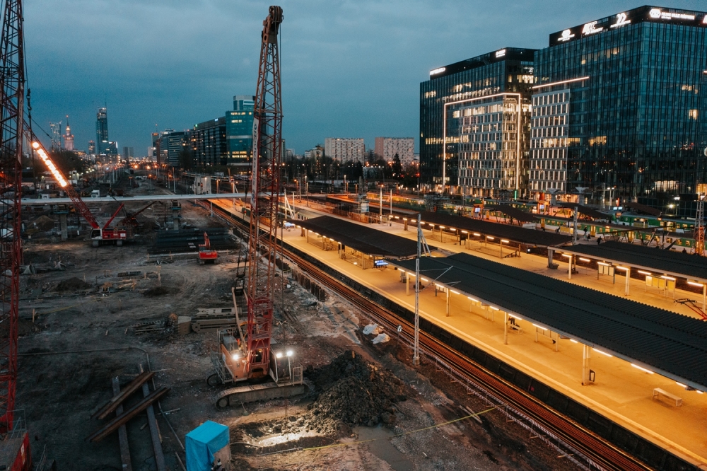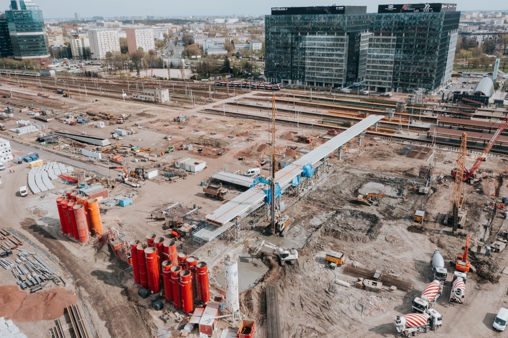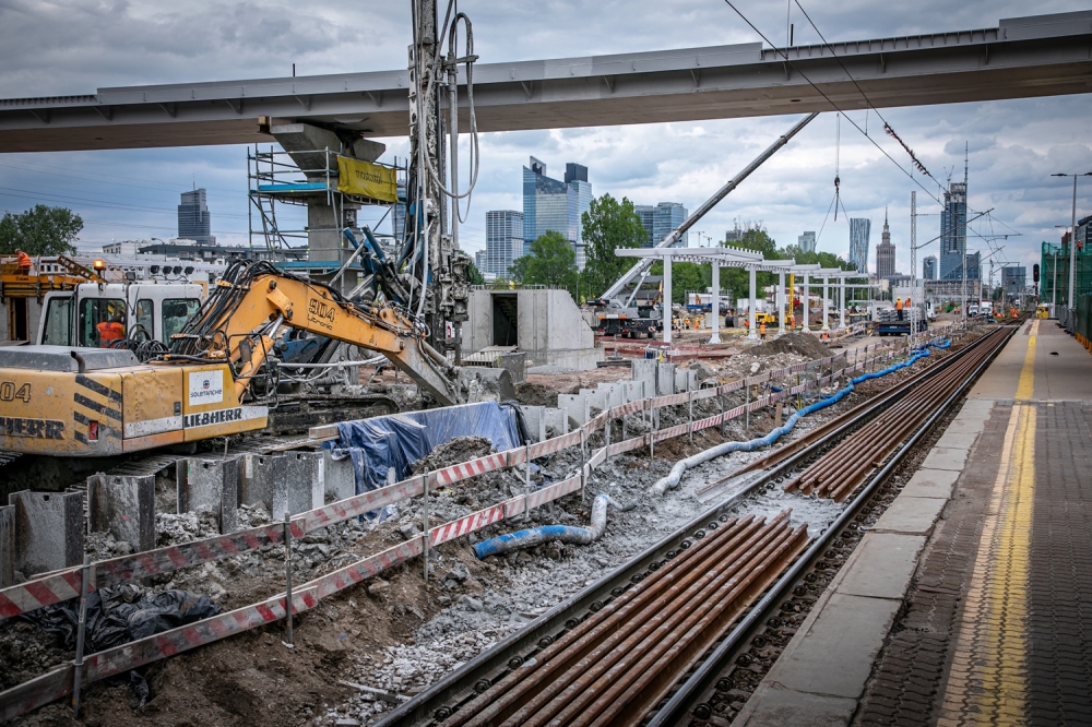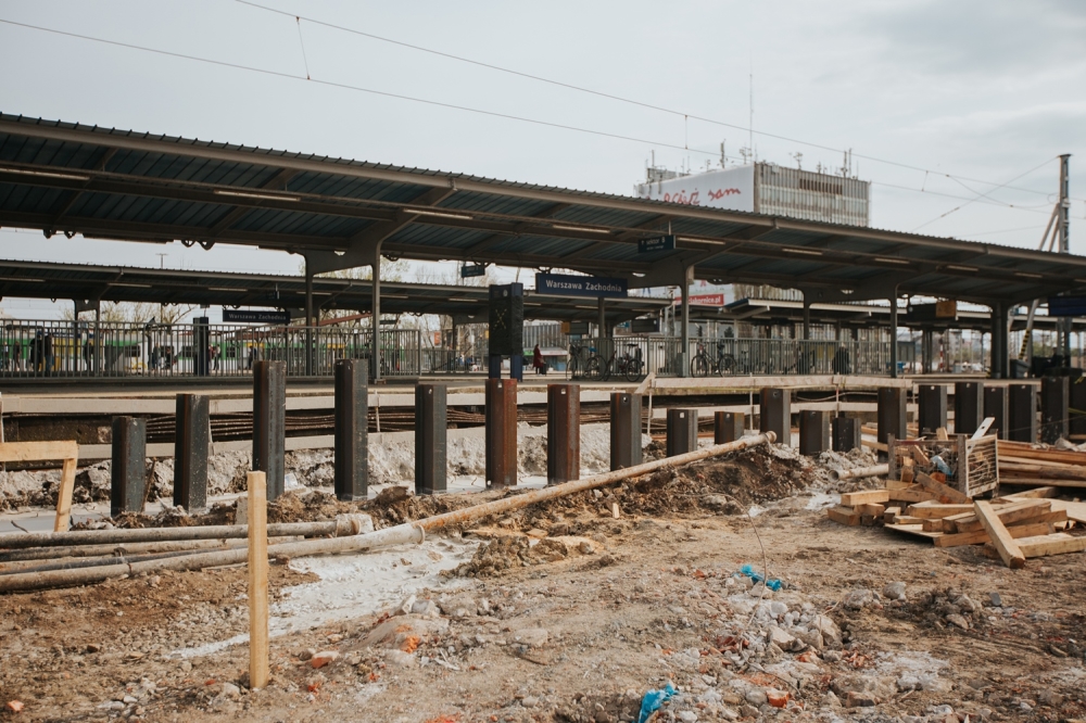 Soletanche pojawiło się na placu budowy w grudniu 2020 roku i rozpoczęło swoje działania od realizacji pali pod konstrukcję kładki dla pieszych. – W mojej ocenie to było najtrudniejsze zadanie. Musieliśmy się obyć z tak nietuzinowym placem budowy. Niecodziennie zdarza się, aby na placu budowy panował tak intensywny ruch, w tym pasażerski. To swego rodzaju precedens. Cały teren stacji Warszawa Zachodnia jest placem budowy z wydzielonymi strefami na użytkowanie w formie dworca. Wiec nasze prace od podróżnych oddzielają zaledwie tory. Dużym wyzwaniem były kompaktowych rozmiarów platformy robocze, które ograniczały ruchy maszyn i wymuszały planowanie każdego zwrotu palownicy. Dodatkowym utrudnianiem był niezwykle intensywny ruch pociągów. Właściwie co kilka minut z obu stron platformy roboczej mijał nas pociąg. Z tego względu wyzwaniem było dostarczenie betonu potrzebnego do wykonania pali. Niestety to utrudnienie przekładało się na czas realizacji naszych prac, które musieliśmy uwzględnić planując harmonogram. – wspomina Marek Wasiluk. Prace palowe zostały zakończone.