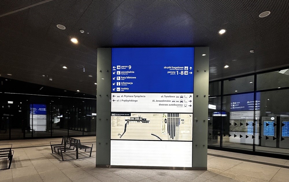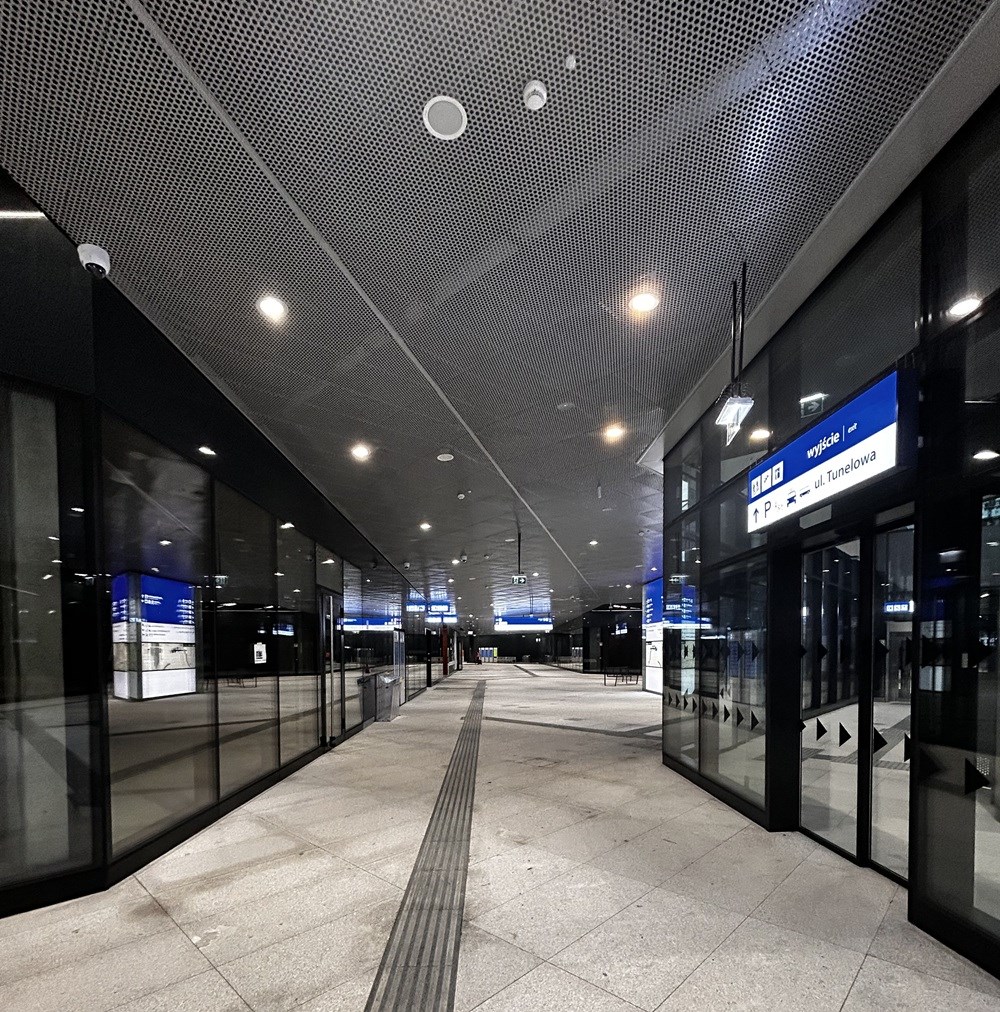 I choć tunel miałby być głównym ciągiem komunikacyjnym na stacji, to jednak wejście od strony dworca kolejowego PKP S.A., a więc z tej, gdzie przyjeżdża znacznie więcej miejskich autobusów (12 linii dziennych w porównaniu do 1 od strony Tunelowej) oraz taksówek, a ponadto tej, która wychodzi na autobusowy Dworzec Zachodni i gdzie po prostu jest znacznie większy potok podróżnych, prowadzi nie prosto do tunelu, lecz...