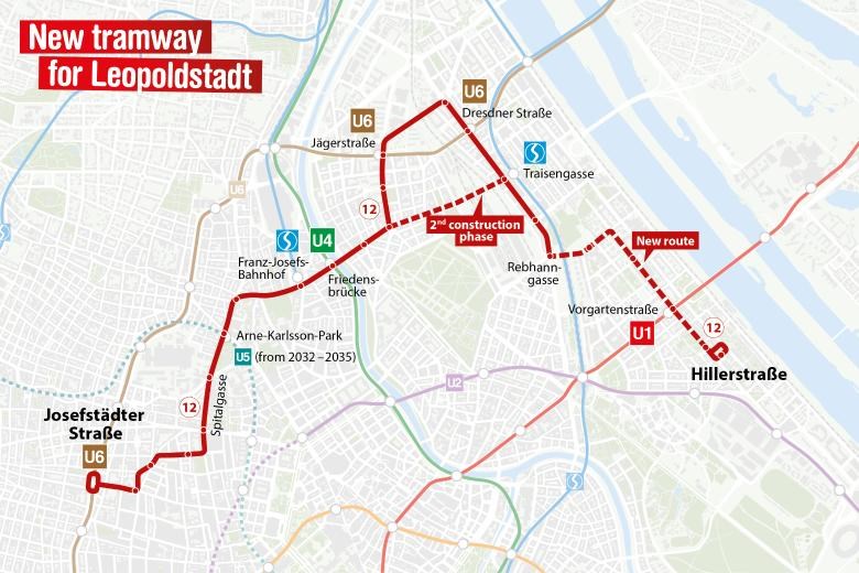 W Wiedniu właśnie rozpoczęła się budowa nowej linii tramwajowej oznaczonej numerem 12. Trasa zacznie się w rejonie węzła Rebhanngasse, następnie zostanie poprowadzona w kierunku wschodnim ulicą Taborstraße, do skrzyżowania z Vorgartenstraße, gdzie tramwaje skręcą we wspomnianą ulicę i pojadą nią aż do pętli końcowej przy Hillerstraße.