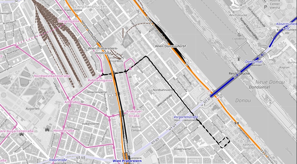 Drugim etapem budowy opisywanej trasy ma być odcinek od przystanku Traisengasse poprzez nowo planową dzielnicę w miejscu północno-zachodniego dworca oraz stacji kolejowej do ulicy Wallensteinstraße. Nowa dzielnica to 44 hektary powierzchni, na której do 2035 roku mają powstać mieszkania dla 16 tysięcy osób i ponad 4 tysiące miejsc pracy. Do tego zaplanowano stworzenie 10-hektarowego parku. Nordwestbahnhof do 1959 roku był stacją pasażerską, a od tego czasu służył jako stacja towarowa. Więcej o nowej dzielnicy można