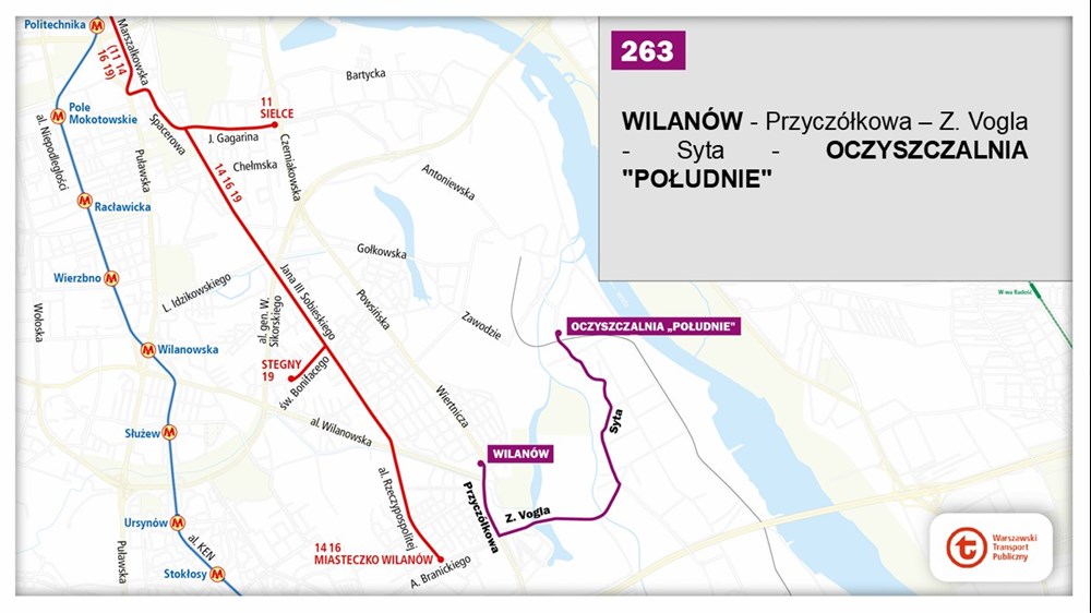 263: WILANÓW – Przyczółkowa – Z. Vogla – Syta – OCZYSZCZALNIA „POŁUDNIE”