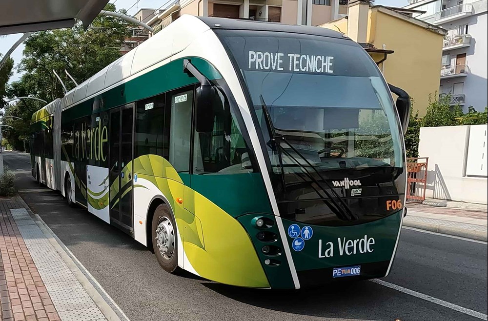 Włochy nie mogą się pochwalić zbyt dużą liczbą sieci trolejbusowych. Kilka linii trolejbusowych spotkamy w Rzymie, Neapolu czy Bolonii. Do tego skromnego grona dołączył właśnie trolejbus w korytarzu BRT w Pescarze do kompleksu sportowego Dean Martin w Montesilvano. Realizacja przedsięwzięcia ciągnęła się od 30 lat. Nic dziwnego, że uruchomienie nowej usługi odbyło się bez oficjalnej fety, a pojazdy wyruszyły w podróż pięć minut po godzinie 6 rano 11 września.