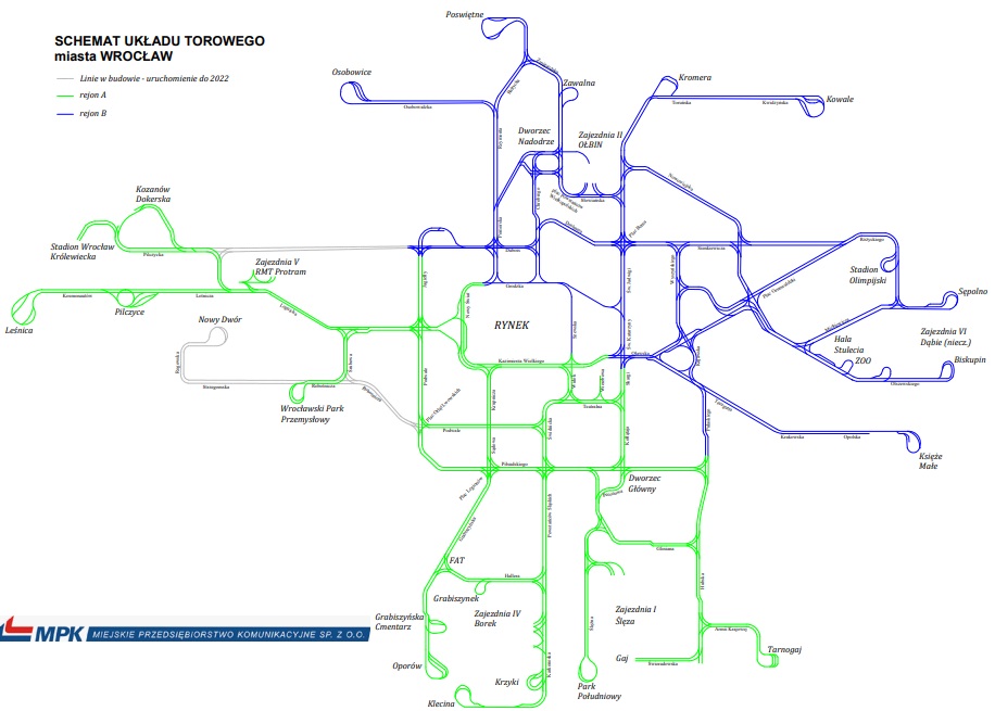 Zamówienie dotyczące konserwacji torów i zwrotnic podzielone jest na dwa obszary. Dzisiaj (21 grudnia) minął termin składania ofert. MPK Wrocław wycenił usługę na 45,1 mln zł, w tym 22,6 mln zł na zadanie I (rejon A + oznakowanie zwrotnic kodami QR w całym mieście) i 22,5 mln zł na zadanie II (rejon B).