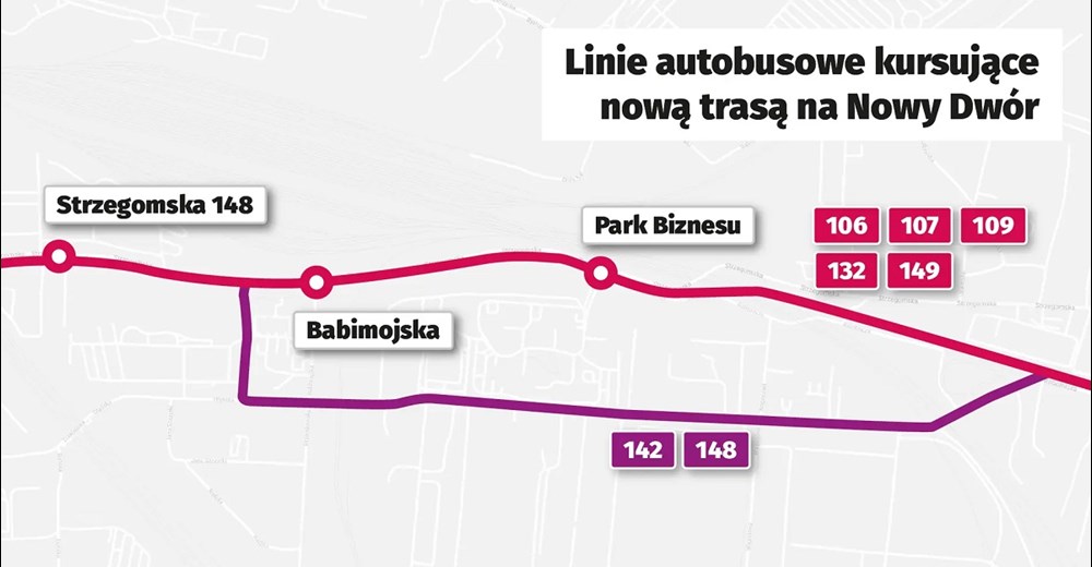 Linie: 106,107, 109, 132, 149, 206, 249 będą kursowały nową trasą autobusowo-tramwajową od ul. Robotniczej do ul. Strzegomskiej, zatrzymując się na nowych przystankach: