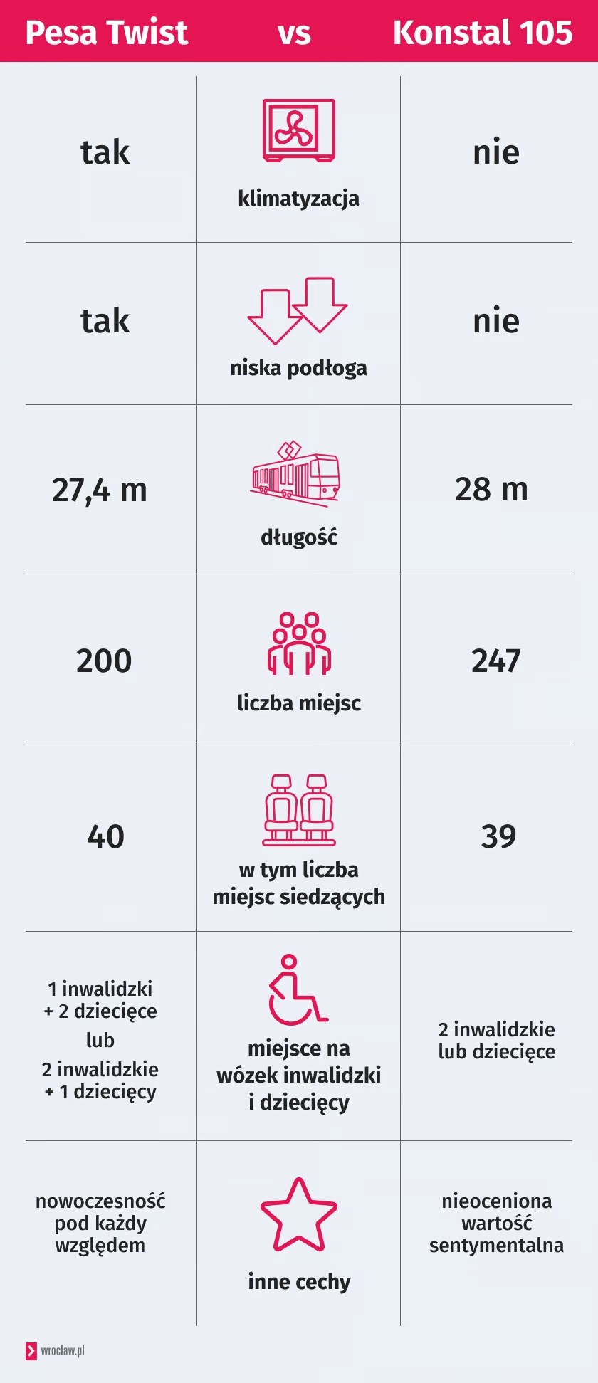 Klasyczne tramwaje Konstalu mają systematycznie znikać z ulic Wrocławia wraz z dostawami nowych Twistów od Pesy. Pierwszy nowy wagon z Bydgoszczy ma dotrzeć do Wrocławia w najbliższych dniach.