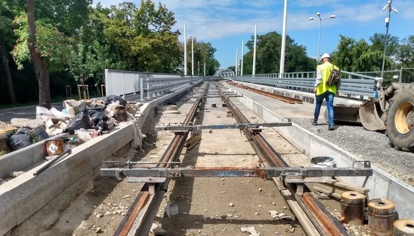 Na wiadukcie nad torami kolejowymi na ul. Strzegomskiej kładzione są kolejne metry szyn tramwajowych. Długi na 160 metrów obiekt to jeden z głównych elementów przyszłego TAT. Pozwoli bezkolizyjnie przejechać nad torami kolejowymi.