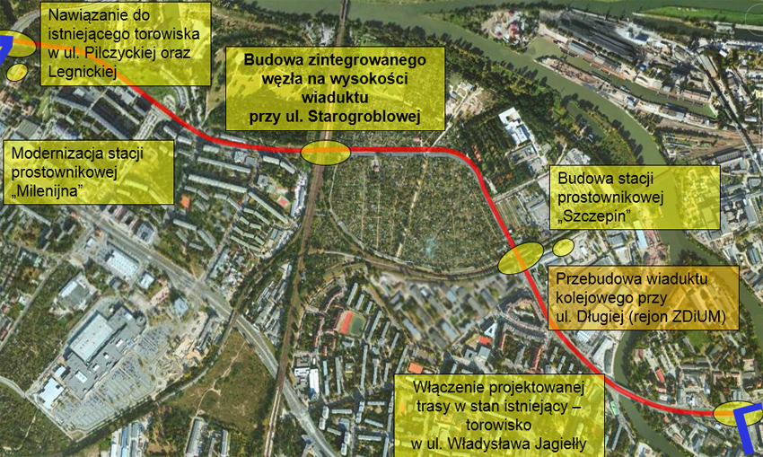 Najpierw, w ramach prac, zostanie przebudowany wiadukt nad ul. Długą, przy nim powstać ma zintegrowany węzeł przesiadkowy. To jest zakres prac, za który odpowiada PKP PLK i to od kolejowego zarządcy głównie zależał będzie harmonogram prac. – Obecny wiadukt rozbierzemy, potem wybudujemy nowy, prawie trzy razy dłuższy niż ten dotychczasowy. Powstanie na nim zintegrowany węzeł przesiadkowy, perony, wiaty przystankowe, oświetlenie. Wiadukt jest na trasie z Wrocław Mikołajów w kierunku Oleśnicy. Zakładamy, że w trakcie inwestycji co najmniej jeden tor dla pociągów będzie dostępny, ale na pewno nie unikniemy pewnych utrudnień – mówiła w marcu podczas podpisywania umowy Bożena Kozmowska, zastępca dyrektora ds. projektów unijnych PKP PLK.