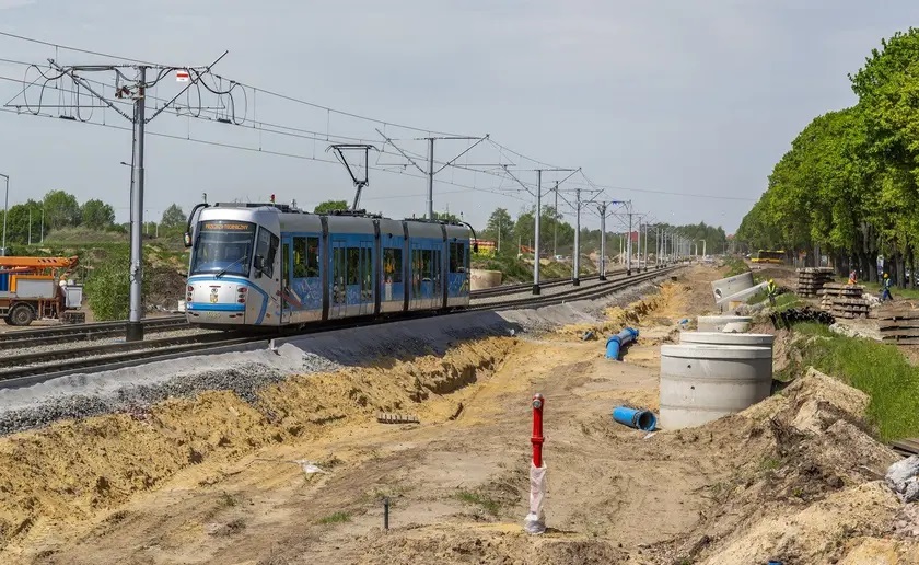 Wczoraj na nowym odcinku torowiska odbyły się jazdy testowe, w których uczestniczył najnowszy tramwaj we flocie MPK Wrocław, a więc Moderus Gamma.