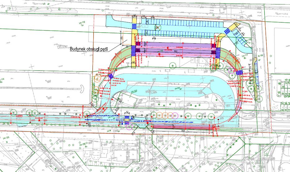 Do prac projektowych przyjęto wariant z poprowadzeniem torowiska w śladzie istniejącej ulicy (bez wydzielania ruchu). Przewidziano budowę pętli dwutorowej.