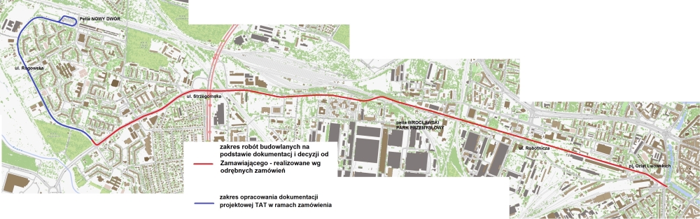 Przedmiotem przetargu, ogłoszonego przez Wrocławskie Inwestycje, jest opracowanie dokumentacji technicznej wraz z uzyskaniem stosownych decyzji administracyjnych dla budowy trasy autobusowo-tramwajowej w ul. Rogowskiej od ul. Strzegomskiej wraz z pętlą autobusowo-tramwajową Nowy Dwór oraz parkingiem przesiadkowym parkuj i jedź na 55 pojazdów. W sumie to ok. 2 km nowej trasy (ok. 1,65 km ul. Rogowskiej oraz ok. 350 m jezdni w obszarze pętli i parkingu).